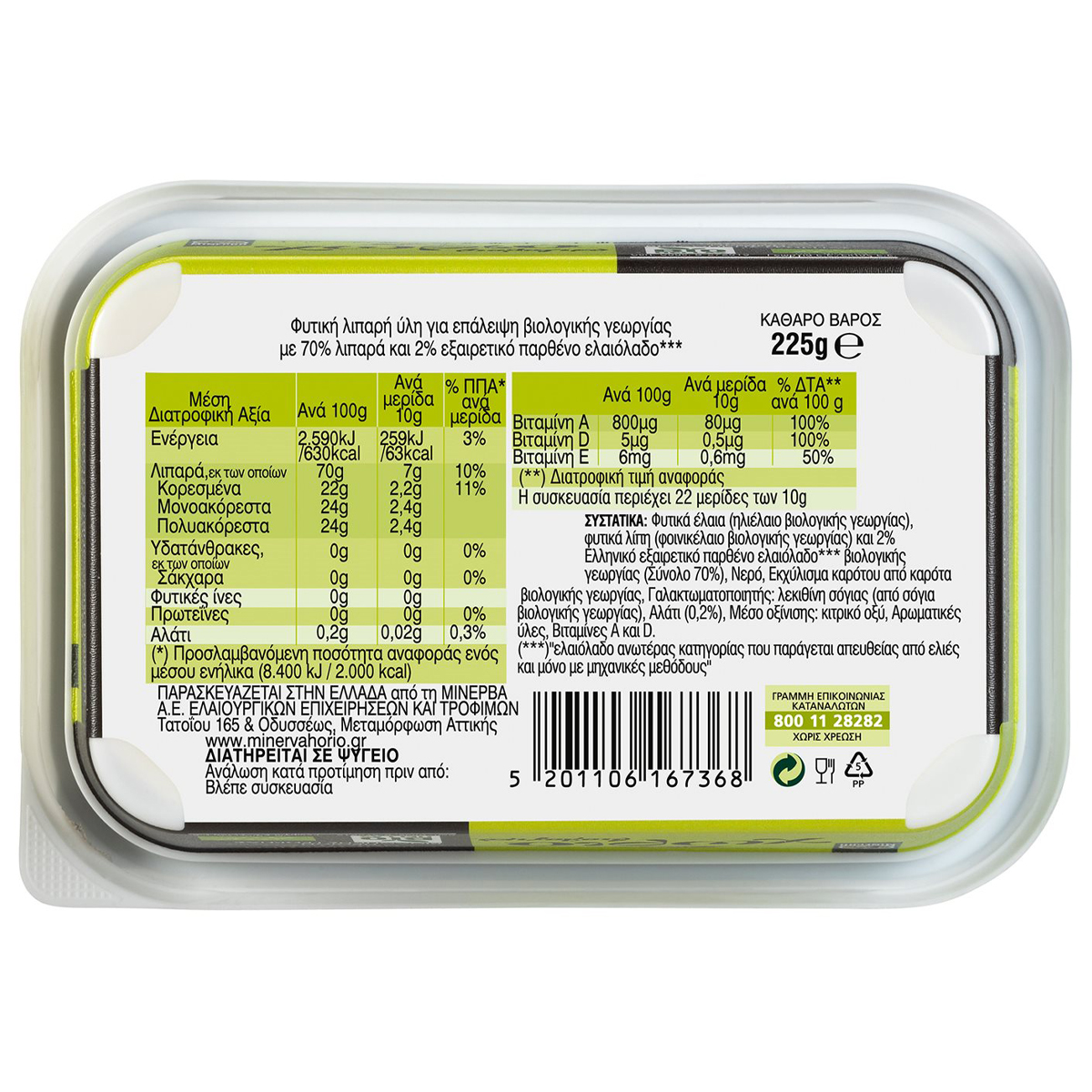 Με φυτικά έλαια και εξαιρετικά παρθένο ελαιόλαδο και φίνα απαλή γεύση. Κατάλληλο για το ψωμί, το μαγείρεμα και τη ζαχαροπλαστική.