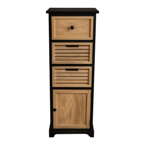 Κόμο Ξύλινο 3 Συρτάρια & 1 Ντουλάπι Μαύρο Φυσικό 34 x 25 x 95 cm