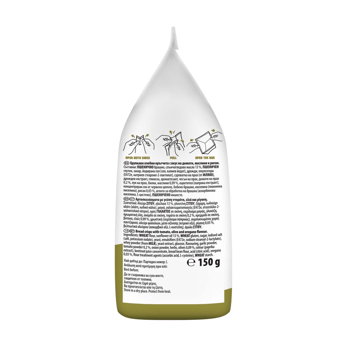Delicious thinly sliced double-baked bread chips with tomato olive flavor.The delicious snack that accompanies every moment of your day with its unique taste.