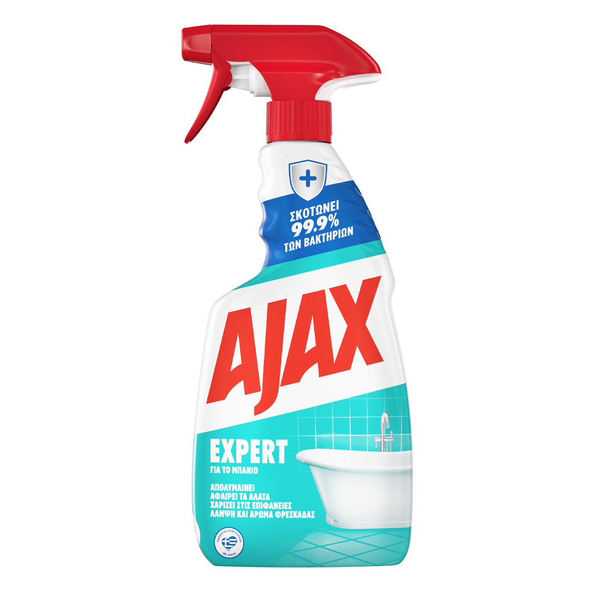 Ajax Expert Cleaner Spray removes bath salts leaving surfaces shiny and fresh smelling. This bathroom cleaner spray kills 99.9% of bacteria. Bottle made of 100% recycled plastic. Recyclable bottle and pump.