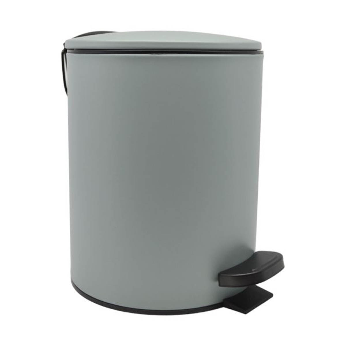 Stainless steel round waste bin in mint color with matte finish and lid with automatic closure. High-strength pedal with foot opening system and removable inner bin with handle for easy moving and cleaning.