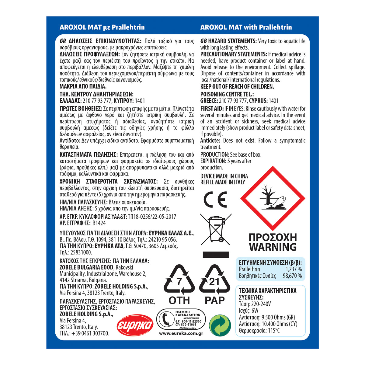 EUREKA HELLAS S.A. 55 Parnithos St., 144 52, Metamorfosi, Greece, Tel.: +30 210 683 2059
