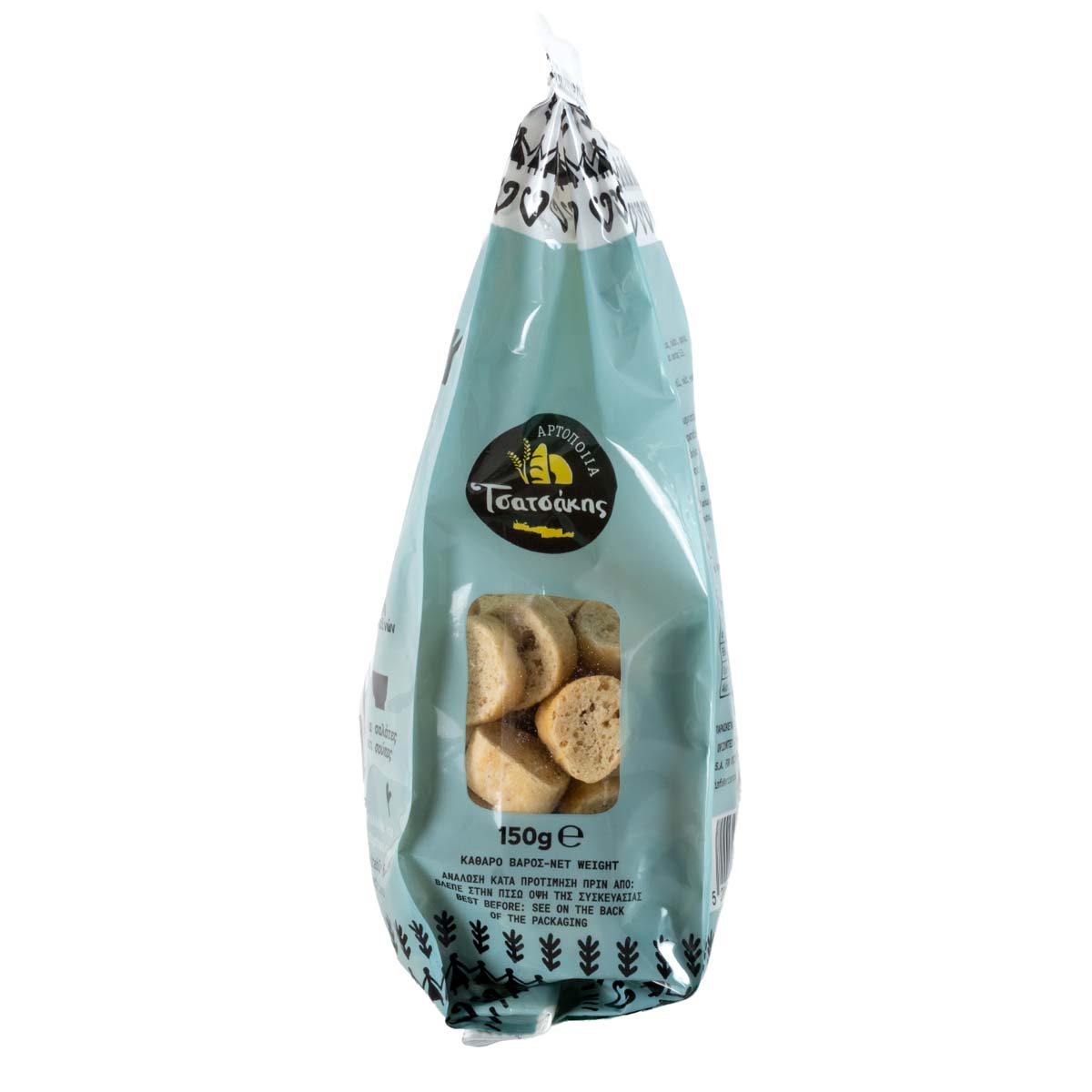 Double baked croutons with wheat. Baked in the oven with pure raw materials without preservatives and palm oil.