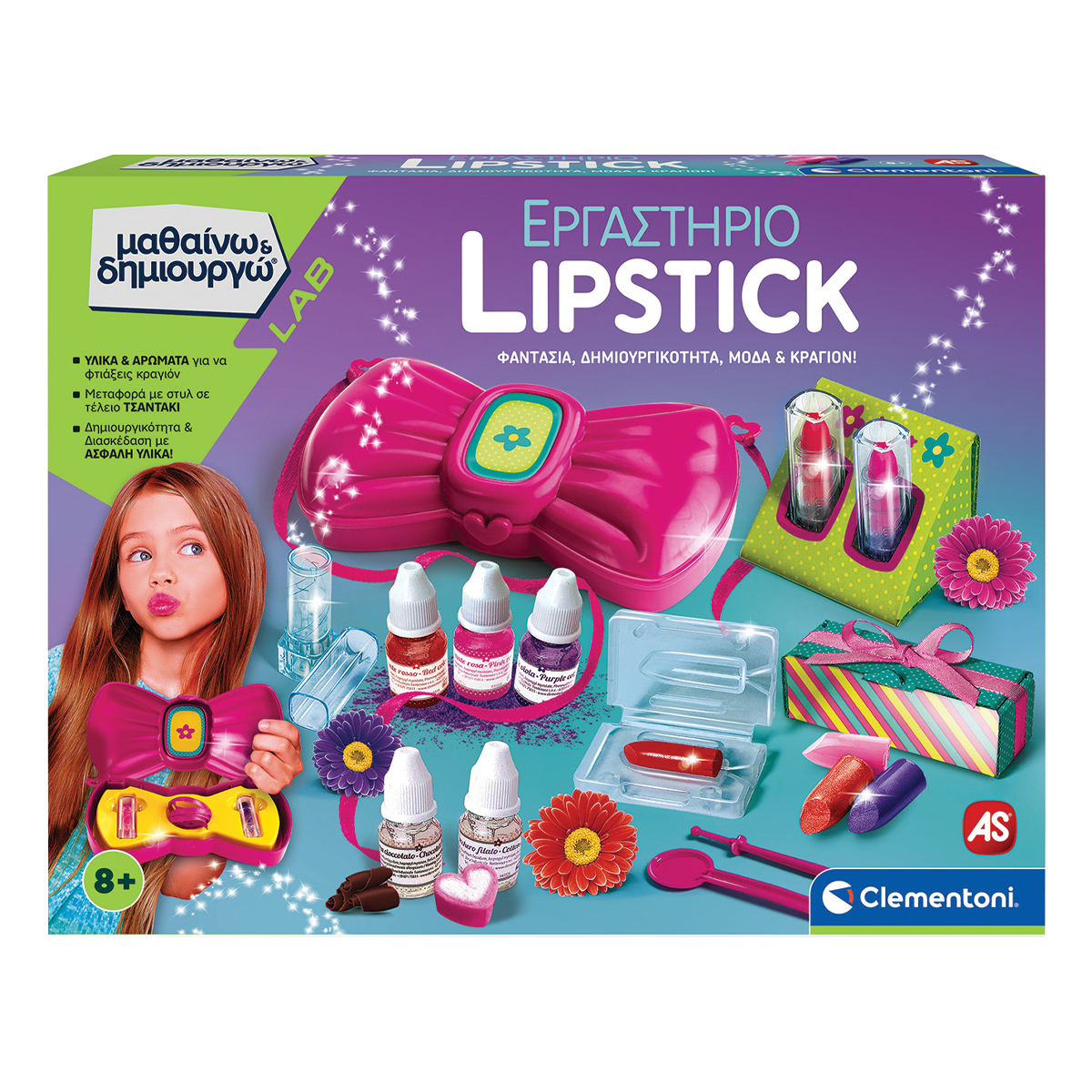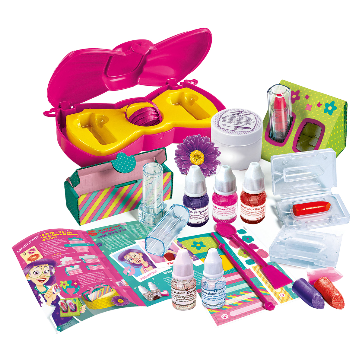 Ένα πλούσιο επιστημονικό σετ για να δημιουργήσεις απίστευτα κραγιόν και να ανακαλύψεις ότι η επιστήμη έχει χίλια χρώματα! Περιέχει όλα όσα χρειάζεσαι και επιστημονικό εξοπλισμό για να φτιάξεις κραγιόν με εύκολο και διασκεδαστικό τρόπο! Το πλούσιο εικονογραφημένο εγχειρίδιο θα καθοδηγήσει τα παιδιά σε όλα τα στάδια παραγωγής και θα τα οδηγήσει να ανακαλύψουν τα μυστικά των καλλυντικών.
