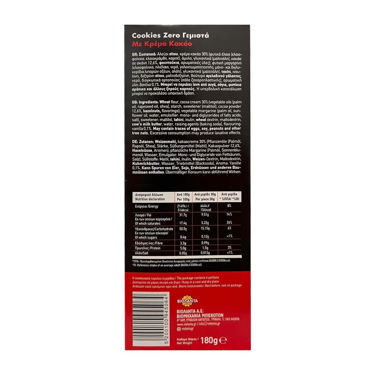 Violanda Zero Cookies Filled with Cocoa without Sugar 180 gr