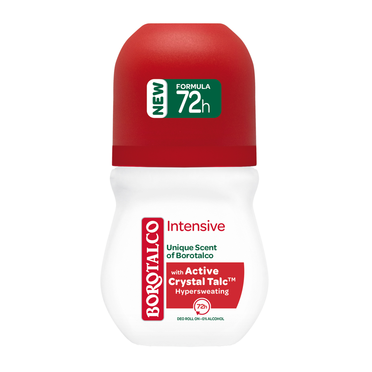 Borotalco Intensive Deodorant protects with effective and prolonged deodorant action against hyperhidrosis. Its renewed formula contains the innovative and patented Active Crystal Talc™ for triple protection against sweat: it prevents, absorbs and neutralizes sweat. It provides 72 hours of protection. A unique and timeless fragrance that combines the freshness of citrus with a heart of white flowers and a powder base. Authentic Borotalco fragrance, with a history dating back to 1904.