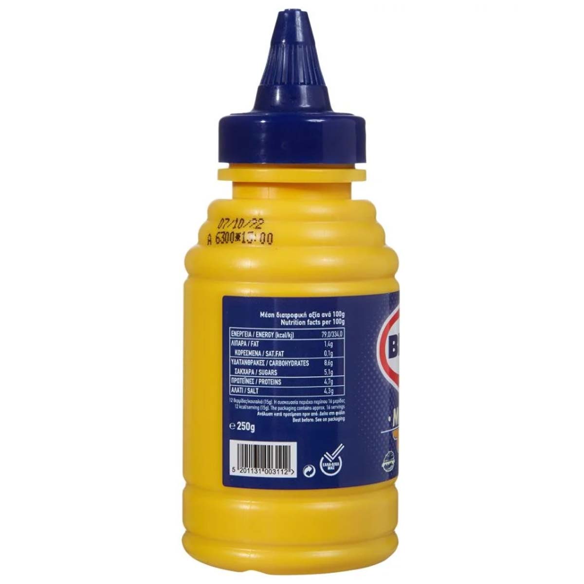 The No 1 Greek Mustard. Since 1930 until today, it accompanies and flavours almost every recipe. It has a mildly sour taste, intense yellow colour and velvety texture. Rich in yellow mustard seed and turmeric, it contains no preservatives-artificial colours and is gluten-free. A completely natural product suitable for any use, either as an ingredient or as an accompaniment to any kind of meat and sausage. Ideal for Hot dogs, Burgers,Sandwiches,Fries.