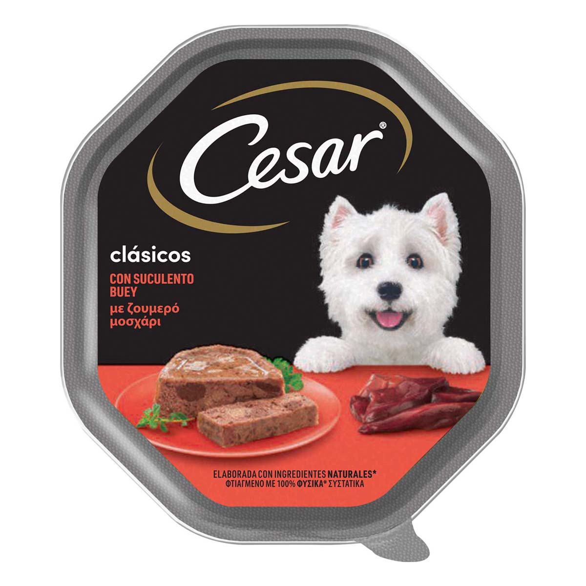 Complete CESAR® CESAR® Beef Disc 150g for adult small dogs.Each meal contains only high quality meat, whole vegetables, high quality grains, vitamins and minerals, all gently cooked for great natural taste and nutritional value.All recipes are 100% complete and balanced meals and are made from high quality ingredients carefully selected. No artificial colours or artificial flavours. No sugar.