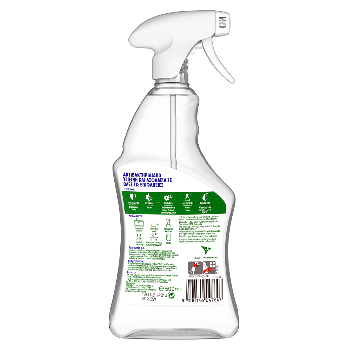 Dettol "Hygiene & Safety" disinfectant spray for general surface cleaning prevents the spread of bacteria and contributes to the hygiene of your home! It is effective against Covid-19. It neutralizes 99.9% of bacteria, including E.coli, Salmonella, MRSA and H1N1 influenza A viruses. Removes 90% of allergens. No odor, color, chlorine. Suitable for use on food cutting surfaces, food chairs, diaper changing mats, refrigerators, garbage cans, sinks, tubs & faucets, toilet bowls. Safe for use on food preparation surfaces.