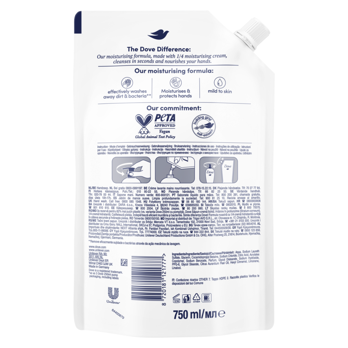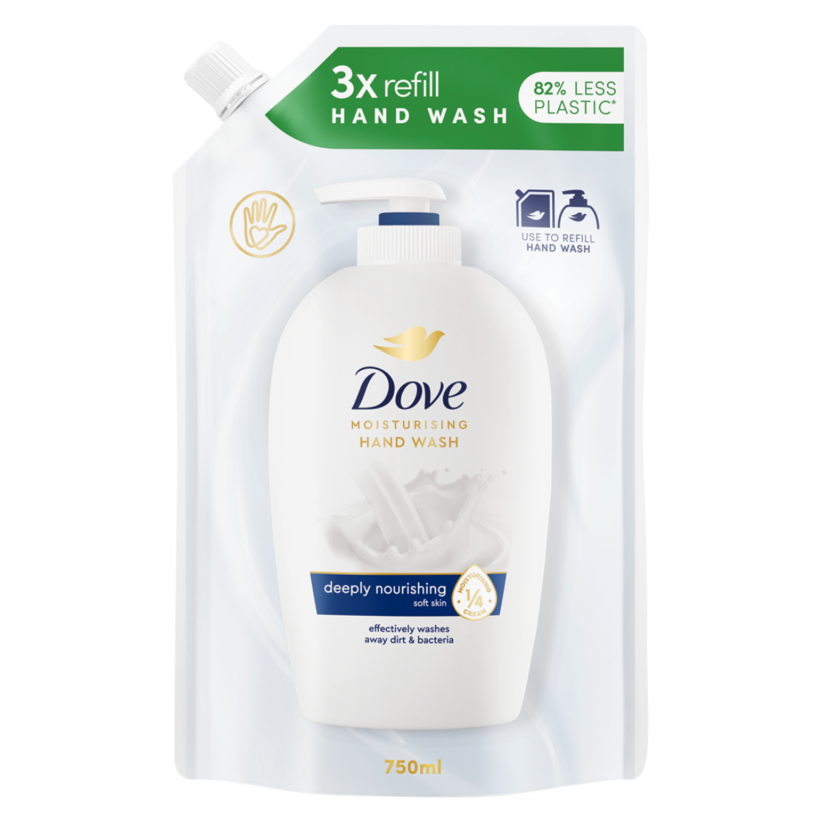 Liquid cream soap for hands, which cleanses and moisturizes the skin of the hands. With natural moisturizing agents for the skin. With mild cleansing agents Technology with 1/4 moisturizer. Give your hands a touch of healthy hydration with Dove Liquid Cream Soap.
