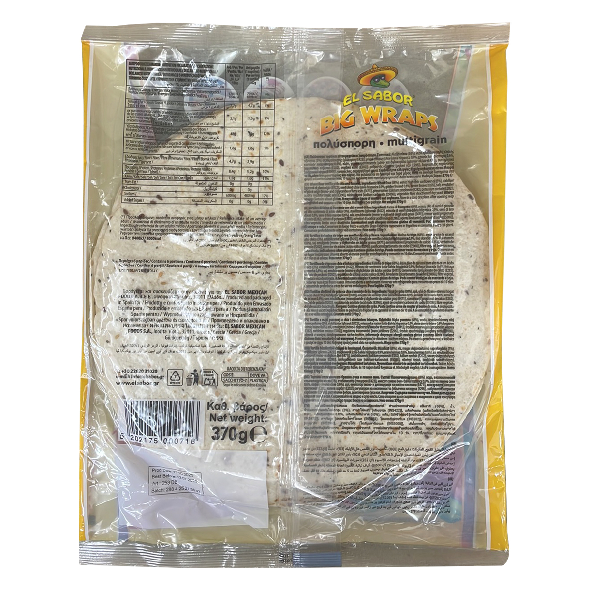 El Sabor Wraps Τορτίγιες Πολύσπορες 6 Τεμάχια 370 gr