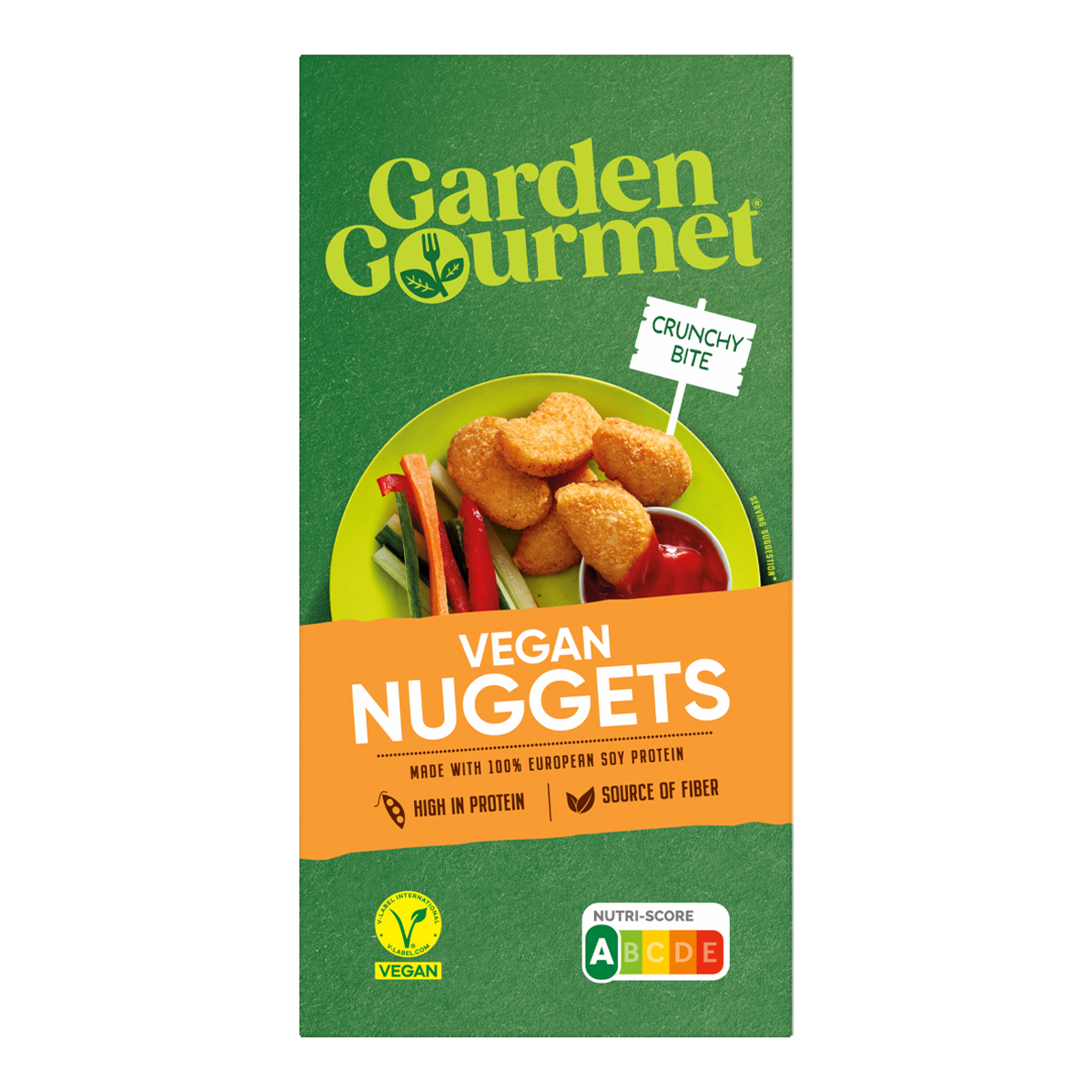 Breaded vegetable nuggets made from WINE protein, vegan. GARDEN GOURMET Vegan Nuggets. Vegan Nuggets have the well-known taste of nuggets without meat! They are so delicious and crunchy that they are the perfect snack for kids and adults alike.