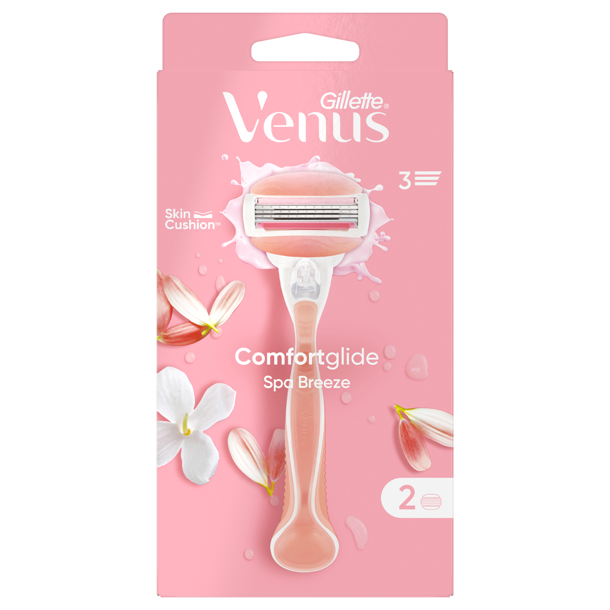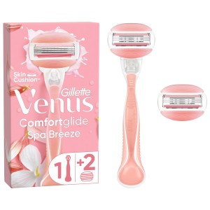 The replacement heads of the Venus ComfortGlide Spa Breeze women's shaver are surrounded by lubricating gel bars that release white tea-scented emollients for better glide and a smooth shave. The moving & rounded 3-blade head adjusts to the curves of your body for a comfortable shave. All Venus replacement heads fit all Venus shaver handles (except Simply Venus).