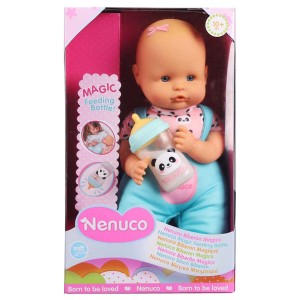A tender baby who is asking for your care! Baby doll with a very light and soft body. Comes with her magic bottle. Children love to see their baby drink all their milk from the bottle, as by placing the bottle more and more vertically in the baby's mouth, the milk seems to run out and the baby has drunk it all. When you place the bottle upright it seems full again! No batteries required.