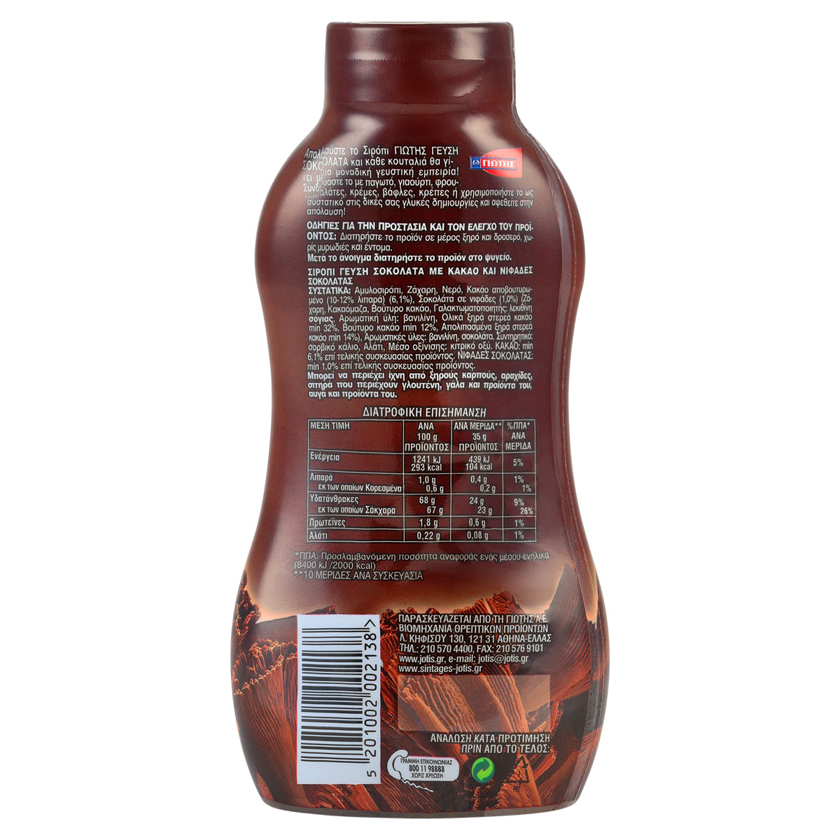 JOTIS Chocolate Syrup with Chocolate flavor has as its main characteristic the natural taste and the wonderful aroma and is used in all sweets and ice creams, every time.