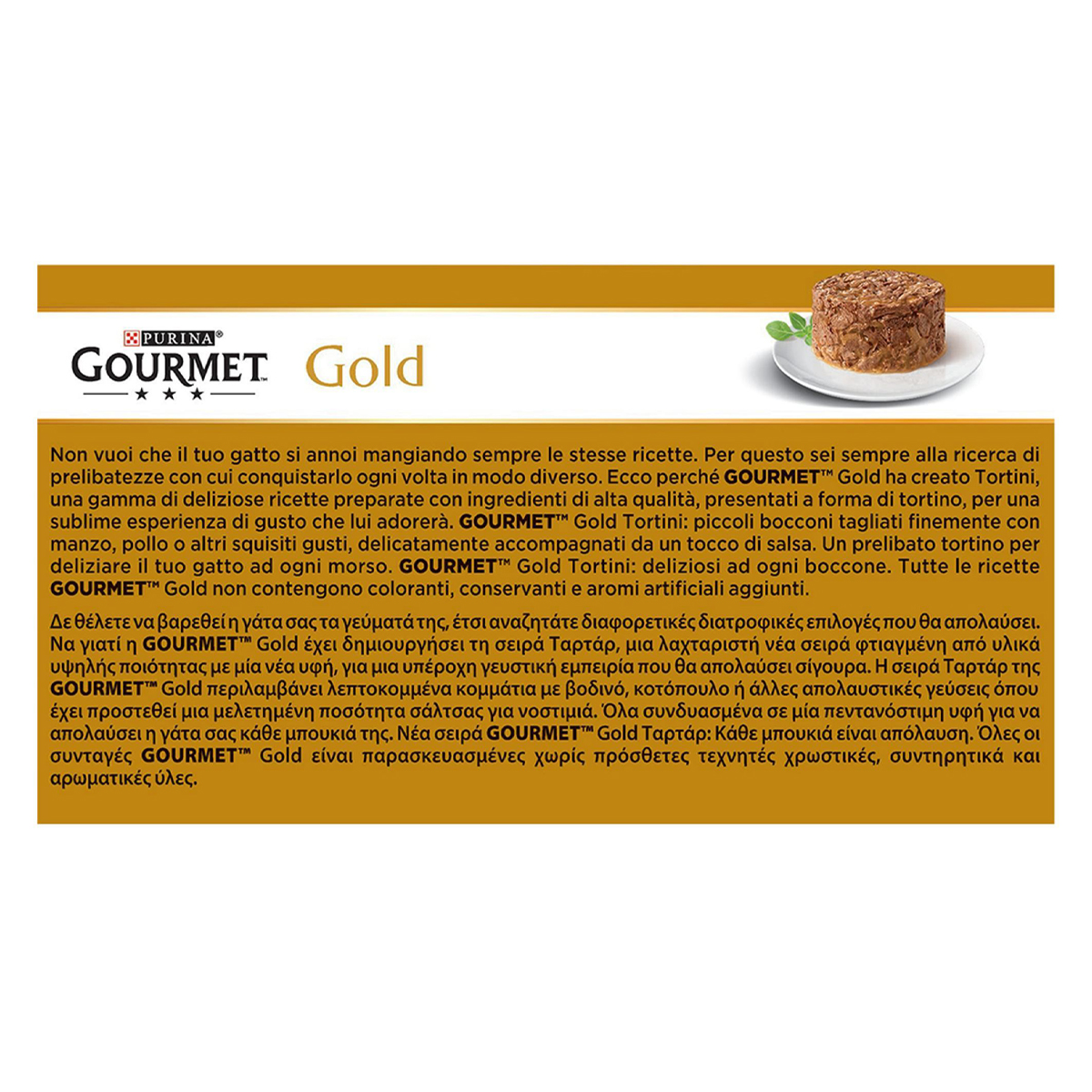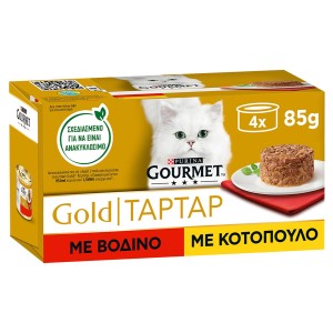 Complete Food for Adults Your cat is a real foodie who likes variety in her meals. And you're always looking for new combinations of flavors and textures to surprise and delight her refined palate. That's why GOURMET Gold has created the Tartare range, a mouth-watering new range made from high-quality ingredients with a new texture, for a delicious dining experience that you're sure to enjoy. GOURMET Gold's Tartare range includes finely cut pieces of meat or fish, where a thoughtful amount of sauce has been added for deliciousness All combined in a delicious texture for your cat to enjoy every bite.