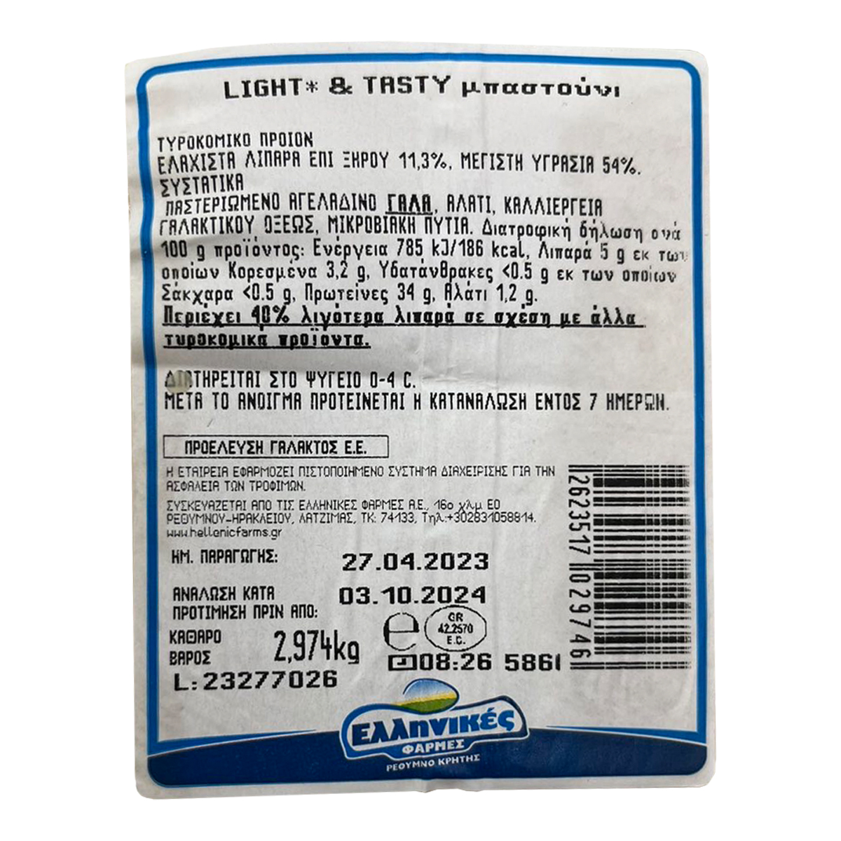 Hellenic Farms Semi-Hard Cheese Light & Tasty 5% Gluten Free Semi-Hard Cheese Loaf