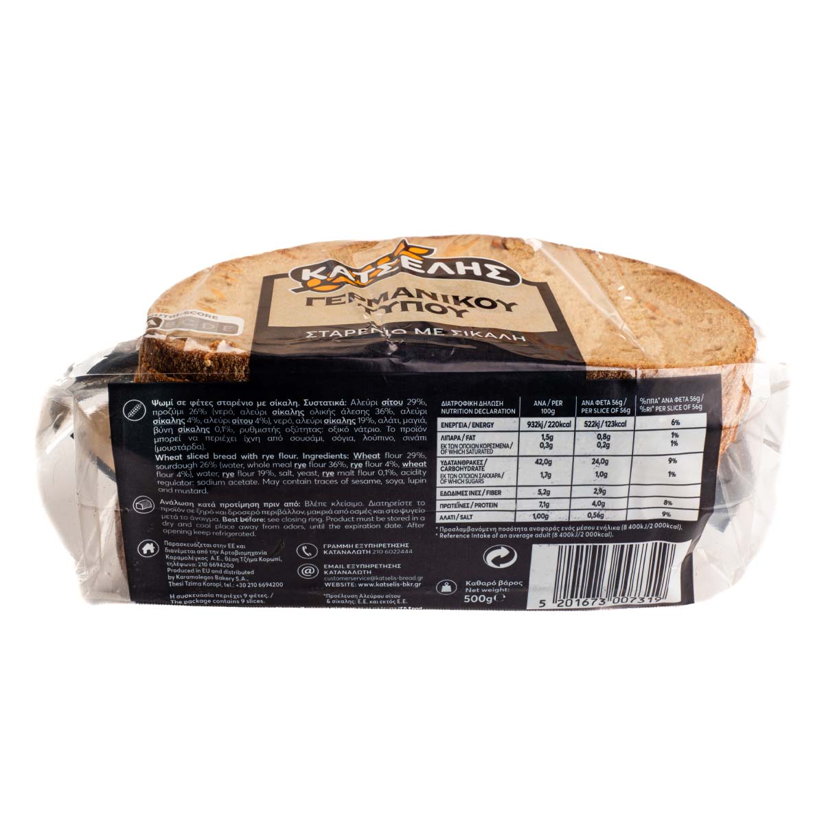 Κατσέλης Ψωμί Γερμανικού Τύπου Σταρένιο Με Σίκαλη Σε Φέτες 500 gr