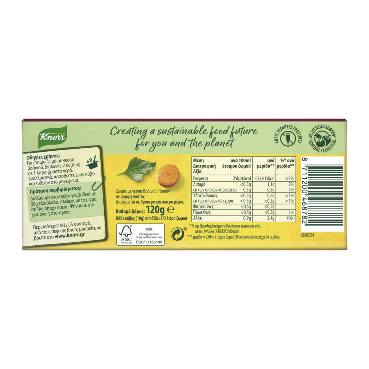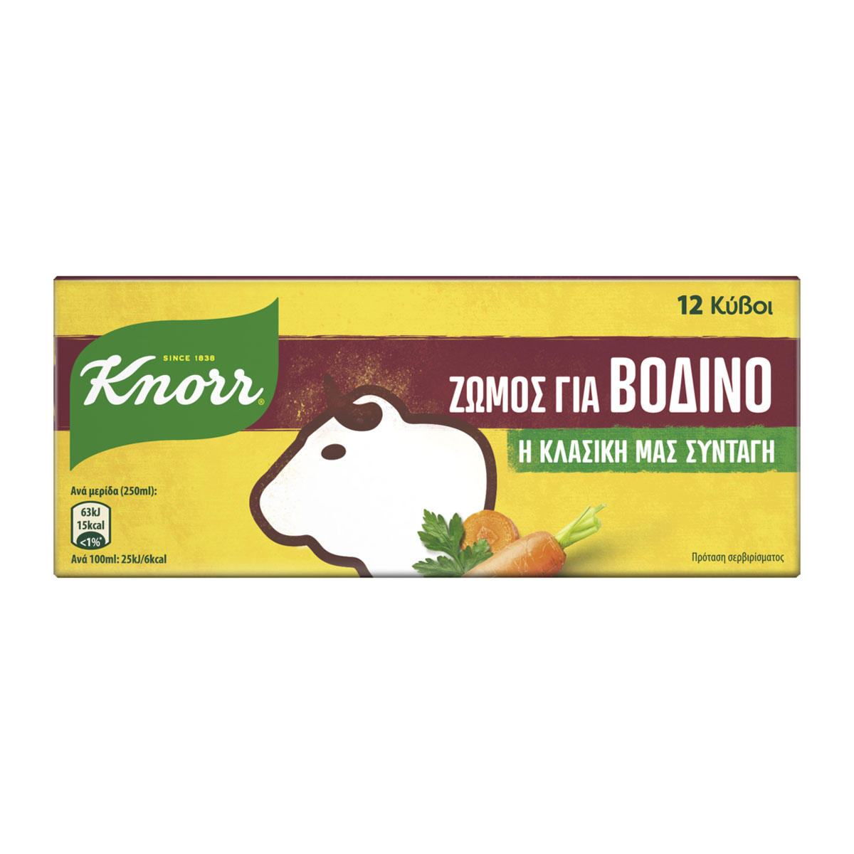 Knorr Cubes are inspired by the needs of Greek cuisine and accompany all your favorite dishes. The Beef Cube is the perfect accompaniment to stews and soups. Knorr Beef Cube gives a rich taste to your dishes thanks to the vegetables and herbs such as onion & parsley it contains. It goes perfectly with your favourite stews and soups.