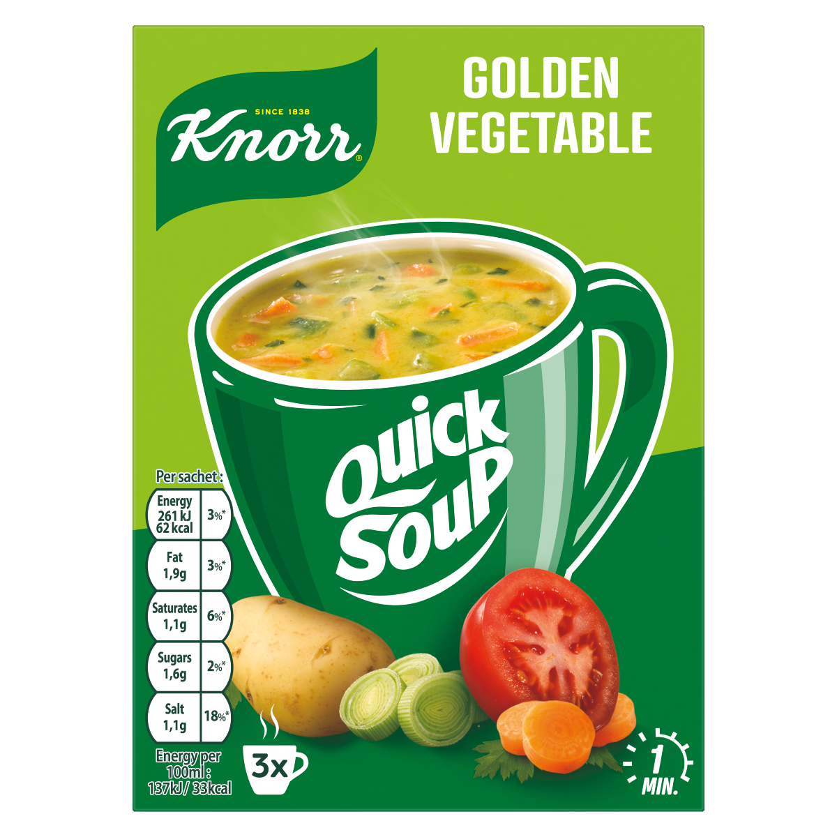 Απολαύστε τις Knorr Quick Soups, όπου και όποτε θέλετε. Οι Quick Soups φτιάχνονται εύκολα και αποτελούν ένα γρήγορο γεύμα ή σνακ.Αυτή η λαχταριστή κρεμώδης σούπα με λαχανικά και κρουτόν έχει δημιουργηθεί με διαλεχτά λαχανικά, κάνοντας την ακαταμάχητη.