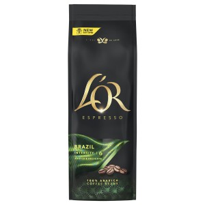 Taste the dreamy landscape of fertile Brazil with the unique variety of whole bean coffee L'OR Brazil 100% Arabica. Sweet and subtle notes unfold from the Arabica beans, cultivated among misty rivers and hills, gently revealing notes of chocolate and cereal. The aftertaste takes us on a gentle play in the warm sunshine of lush Brazil.