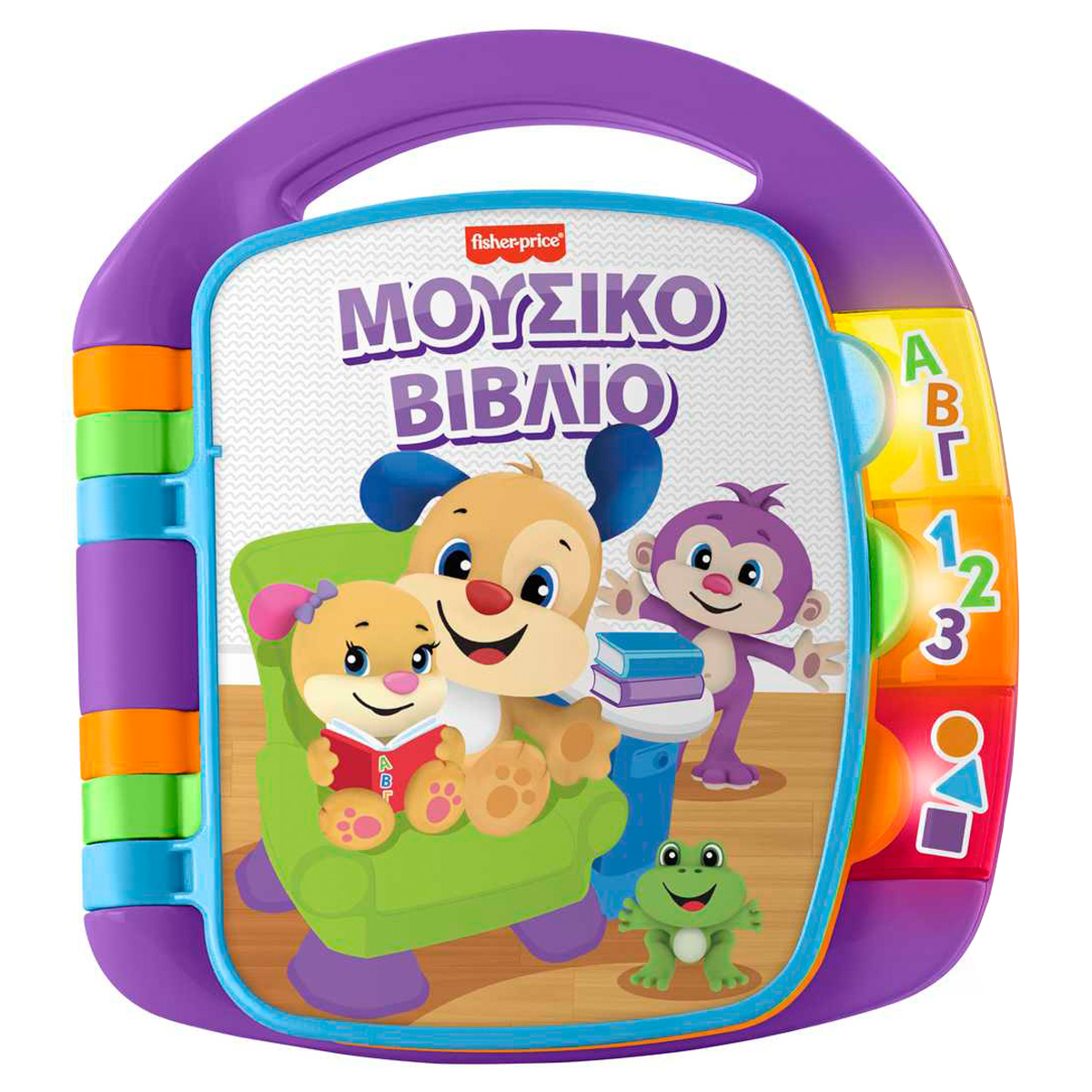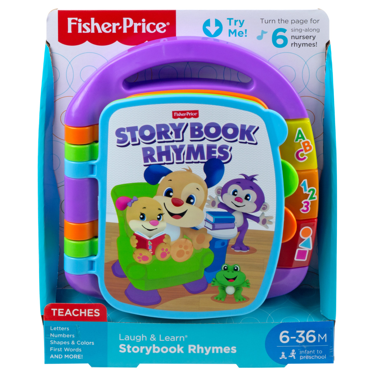The 6 songs will encourage your little one to turn the pages and sing along! A fun and educational song on each page! And lots more to discover: letters, colours, numbers and fun surprises! Pressing the three bright buttons on the side activates other educational content that teaches the alphabet, shapes, numbers and counting. Your little one's favourite friends, Doggy and his Little Sister, make learning fun. The handle at the top makes it easy to carry, so you can take it with you wherever you go with baby! As your baby plays, important skills develop: Bright colors and songs enhance his vision and hearing. By turning the pages, he develops fine motor skills. And as he turns the pages or presses the buttons to activate the songs, he discovers that his movements cause surprises, thus learning the concept of action-reaction. Talk to your baby as he plays, helping him to understand more about the concept of "action-reaction".