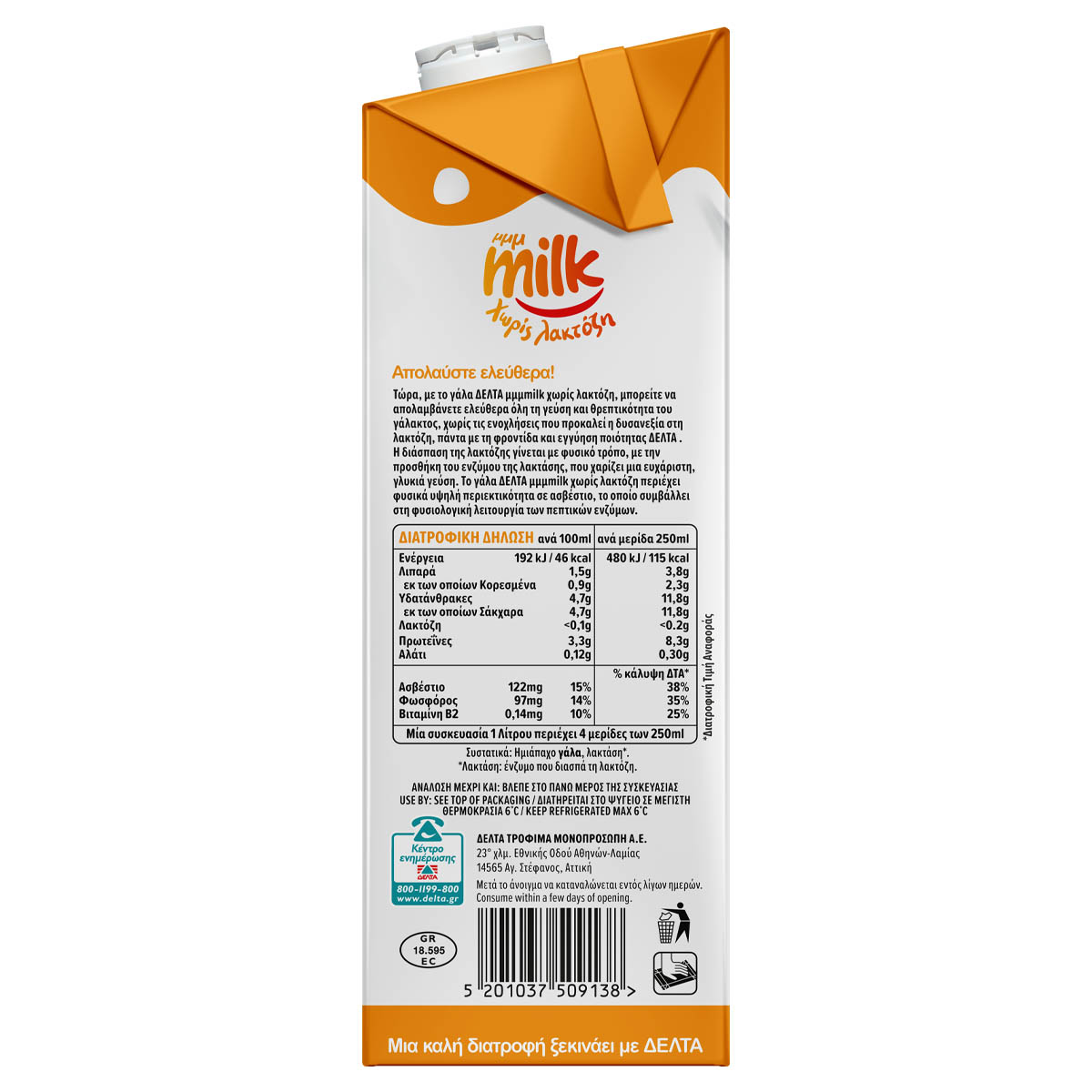 Lactose-free semi-skimmed milk, for people whose consumption of milk may cause discomfort due to lactose intolerance.