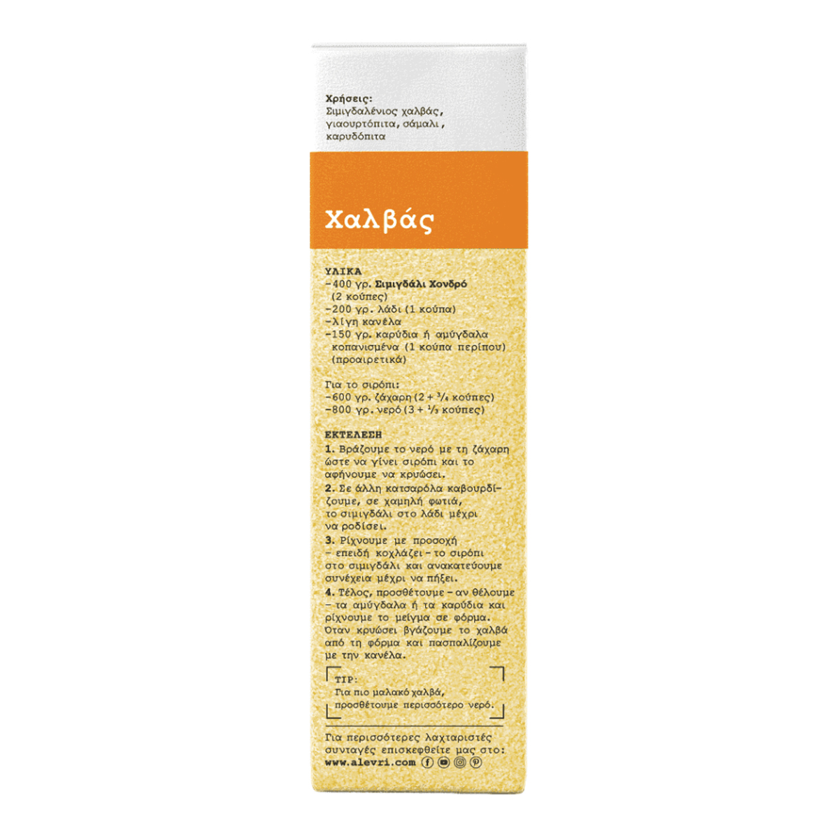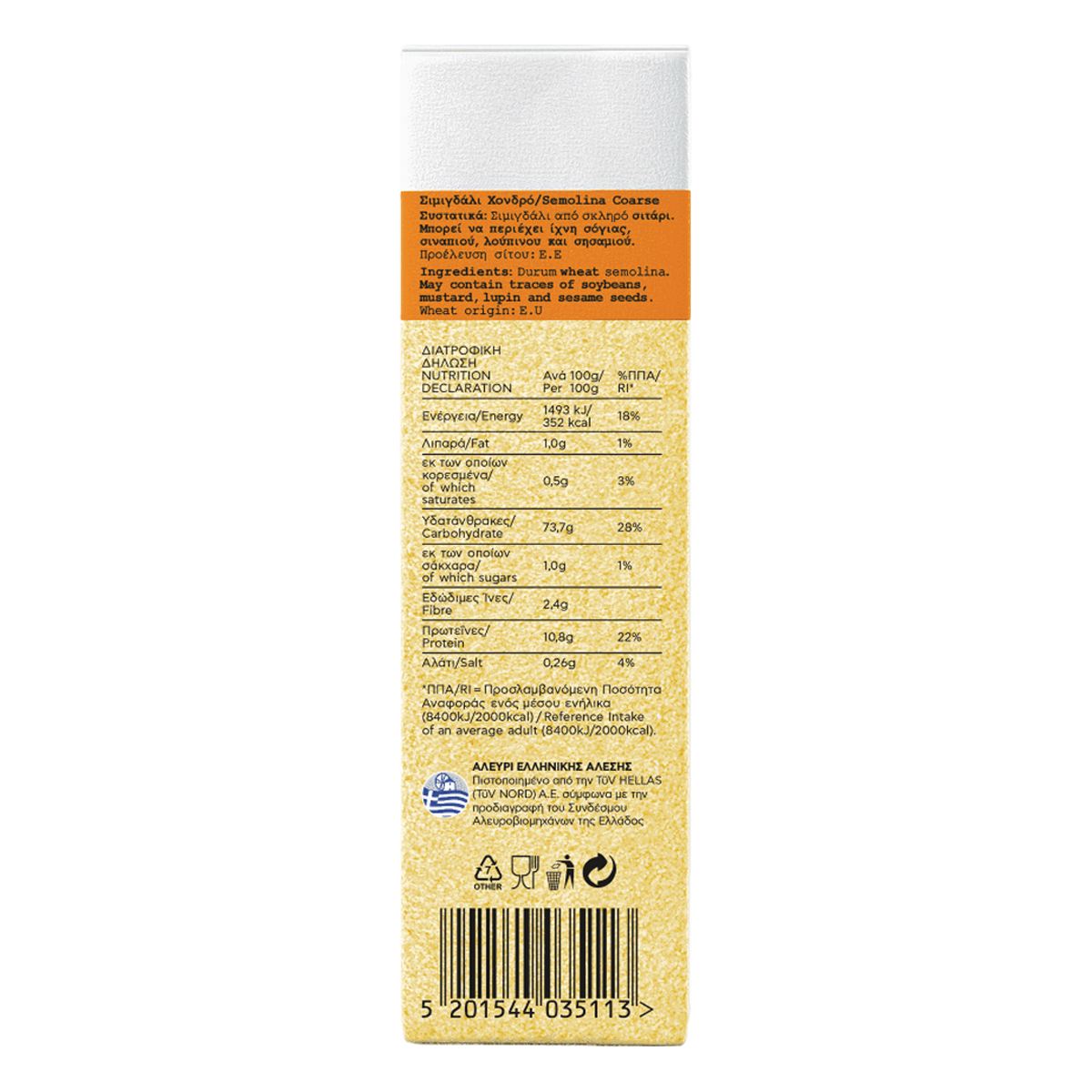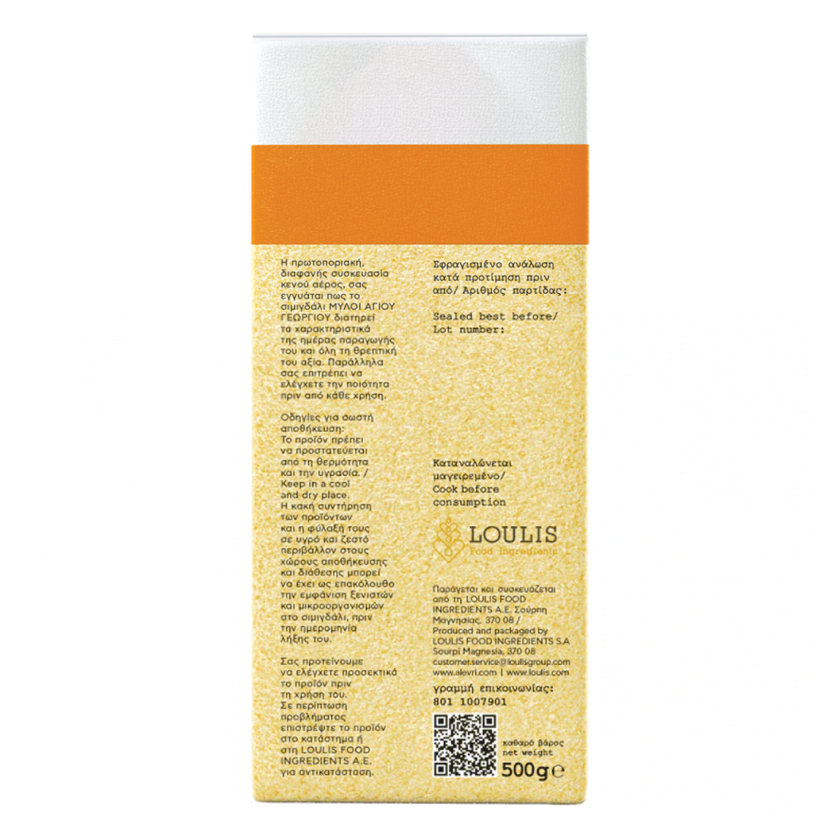Depending on the degree of grinding we get the coarse semolina which is ideal for making semolina halva, yoghurt pie, walnut pie and trahanas. It also offers a significant 10.8% protein content.