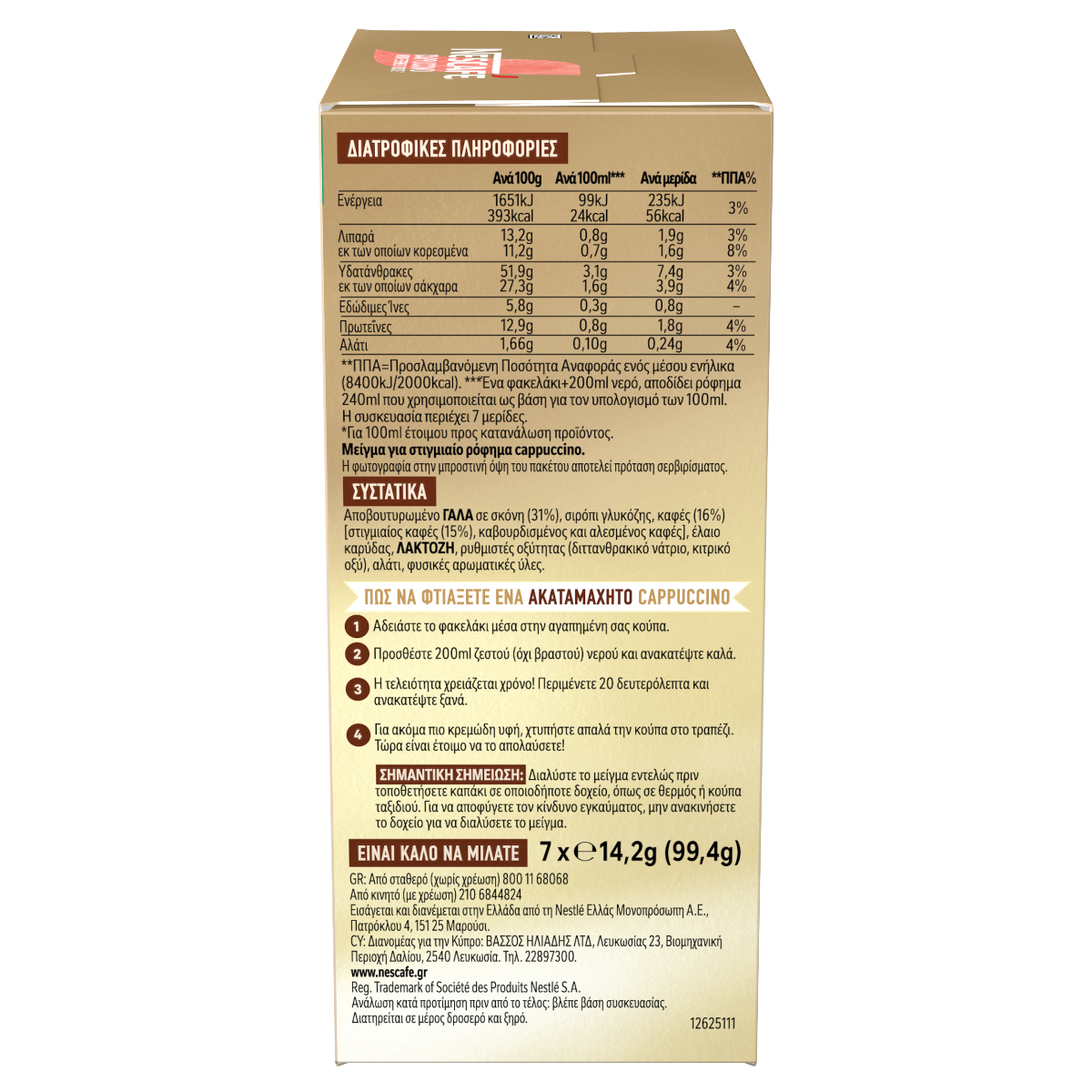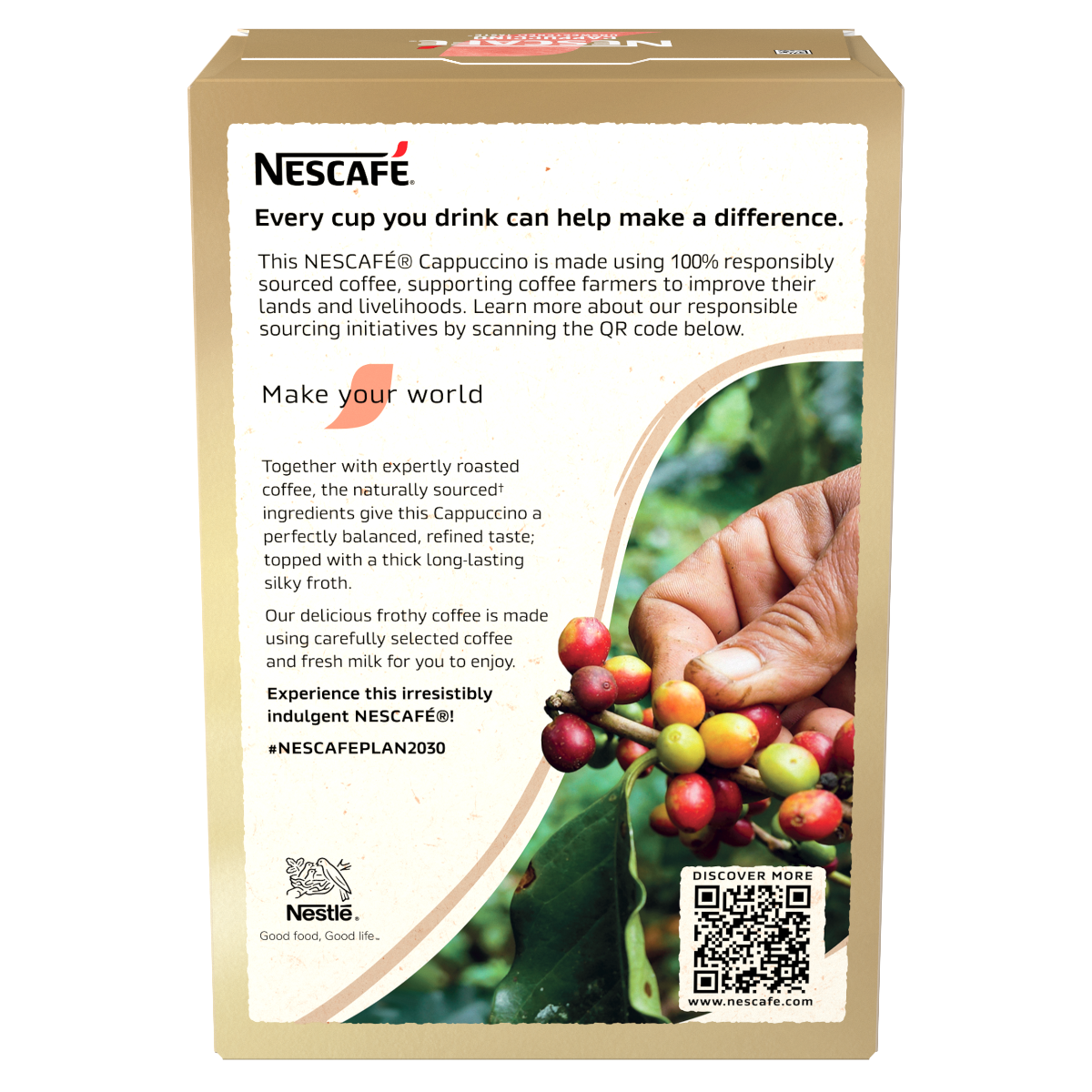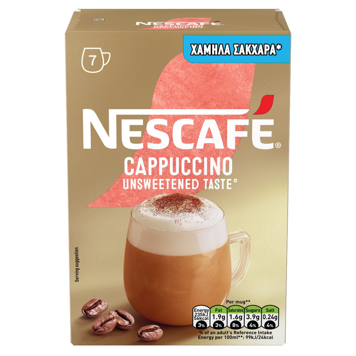 Discover the new NESCAFE® Cappuccino Unsweetened Taste, with less sweetness than NESCAFE® Cappuccino. Enjoy an aromatic cappuccino with velvety foam and low sugar content. A fine combination of coffee and milk, offering a rich taste with a more balanced flavour profile. Blend for an instant cappuccino drink.