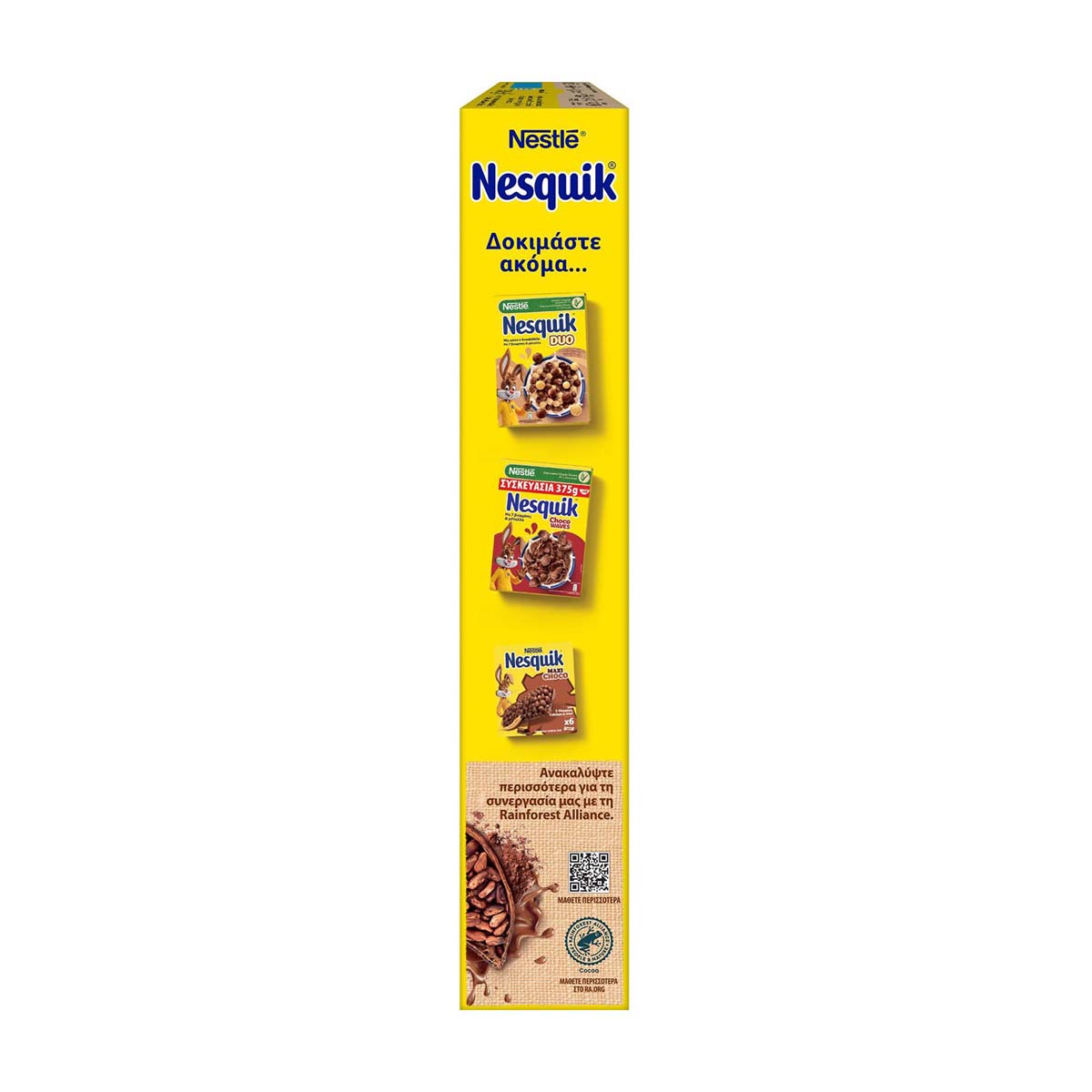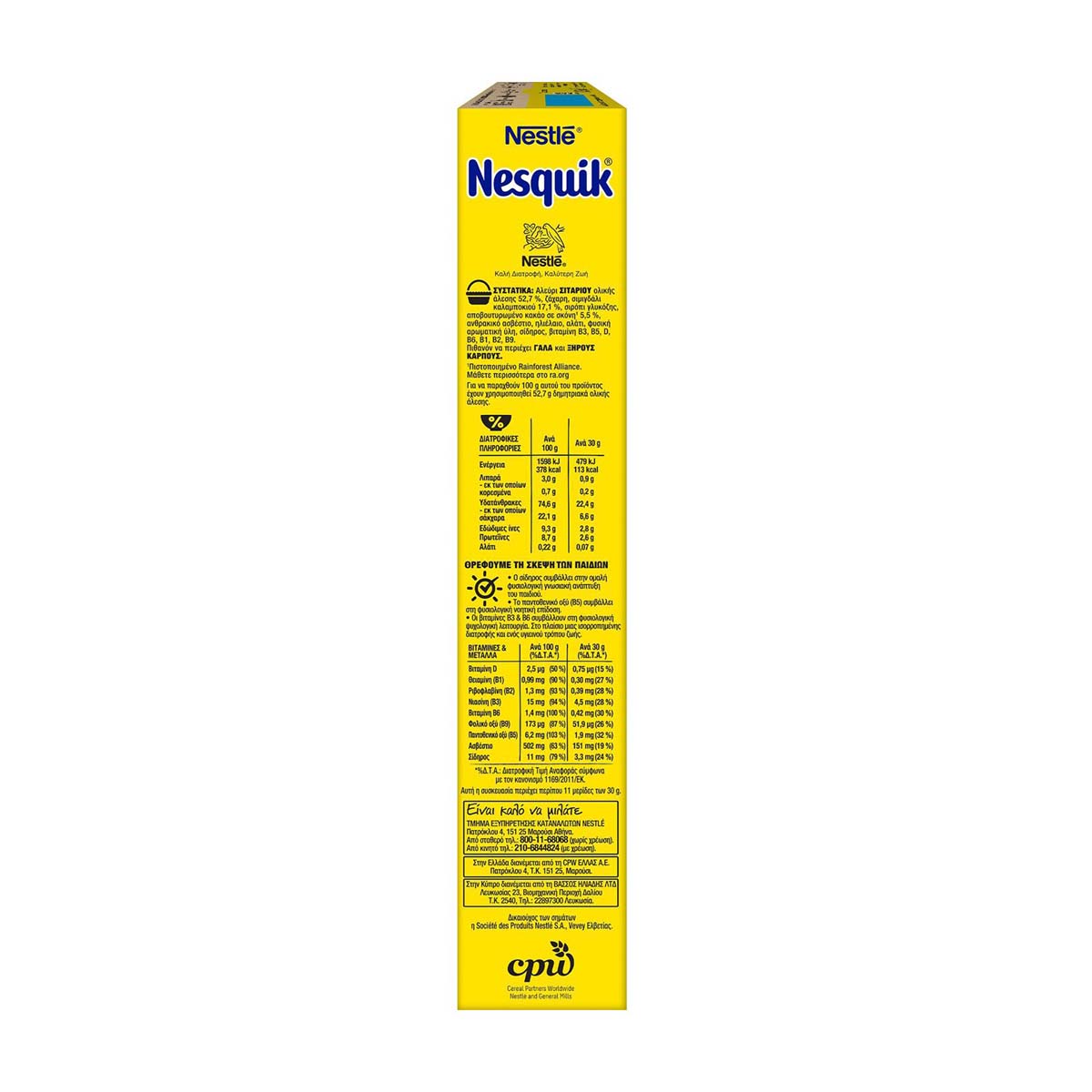 Τα παιδιά χρειάζονται ένα θρεπτικό και γευστικό πρωινό για να ξεκινήσουν την ημέρα τους με ενέργεια! Οι τραγανές μπαλίτσες δημητριακών ολικής άλεσης με την αυθεντικά σοκολατένια γεύση NESQUIK®, που λατρεύουν τα παιδιά, αποτελούν πηγή φυτικών ινών. Επιπλέον, είναι εμπλουτισμένα με βιταμίνες Β6, Β3, Β5 & Σίδηρο. Ο σίδηρος συμβάλλει στην ομαλή φυσιολογική γνωσιακή ανάπτυξη του παιδιού. Το παντοθενικό οξύ (Β5) συμβάλλει στη φυσιολογική νοητική επίδοση και οι βιταμίνες Β3 & Β6 συμβάλλουν στη φυσιολογική ψυχολογική λειτουργία. Τα δημητριακά εμπνέουν τη δημιουργικότητα τους... κάθε μέρα! Επίσης, περιέχουν βιταμίνη D που συμβάλλει στην φυσιολογική απορρόφηση του ασβεστίου και στην διατήρηση της φυσιολογικής κατάστασης των οστών. Έτσι, σε συνδυασμό με το γάλα ή το γιαούρτι τα παιδικά δημητριακά της Nestle αποτελούν ένα θρεπτικό πρωινό γεύμα για τα παιδιά. Γιατί με τα δημητριακά NESQUIK® τα πρωινά γίνονται πιο όμορφα!