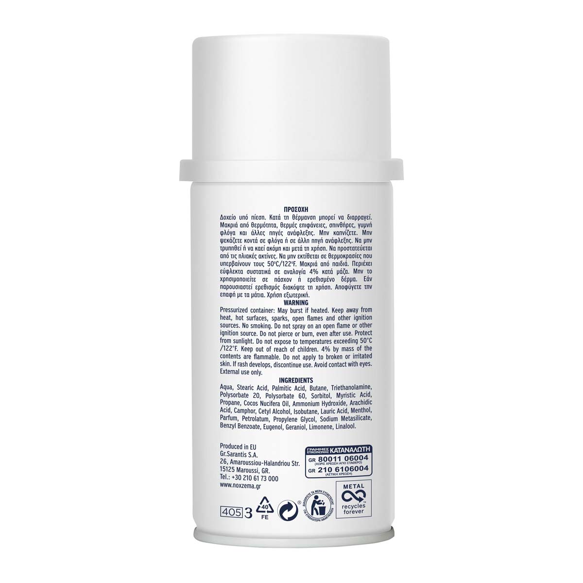Pressurized container. During heating it may burst. Keep away from heat, hot surfaces, sparks, naked flame and other sources of ignition. Do not smoke. Do not spray near a flame or other source of ignition. Do not puncture or burn even after use. Protect from sunlight. Do not expose to temperatures exceeding 50°C/122°F. Keep away from children. Contains flammable components in a proportion of 4% by mass. Do not use on affected or irritated skin. If irritation occurs discontinue use. Avoid contact with eyes. External use.