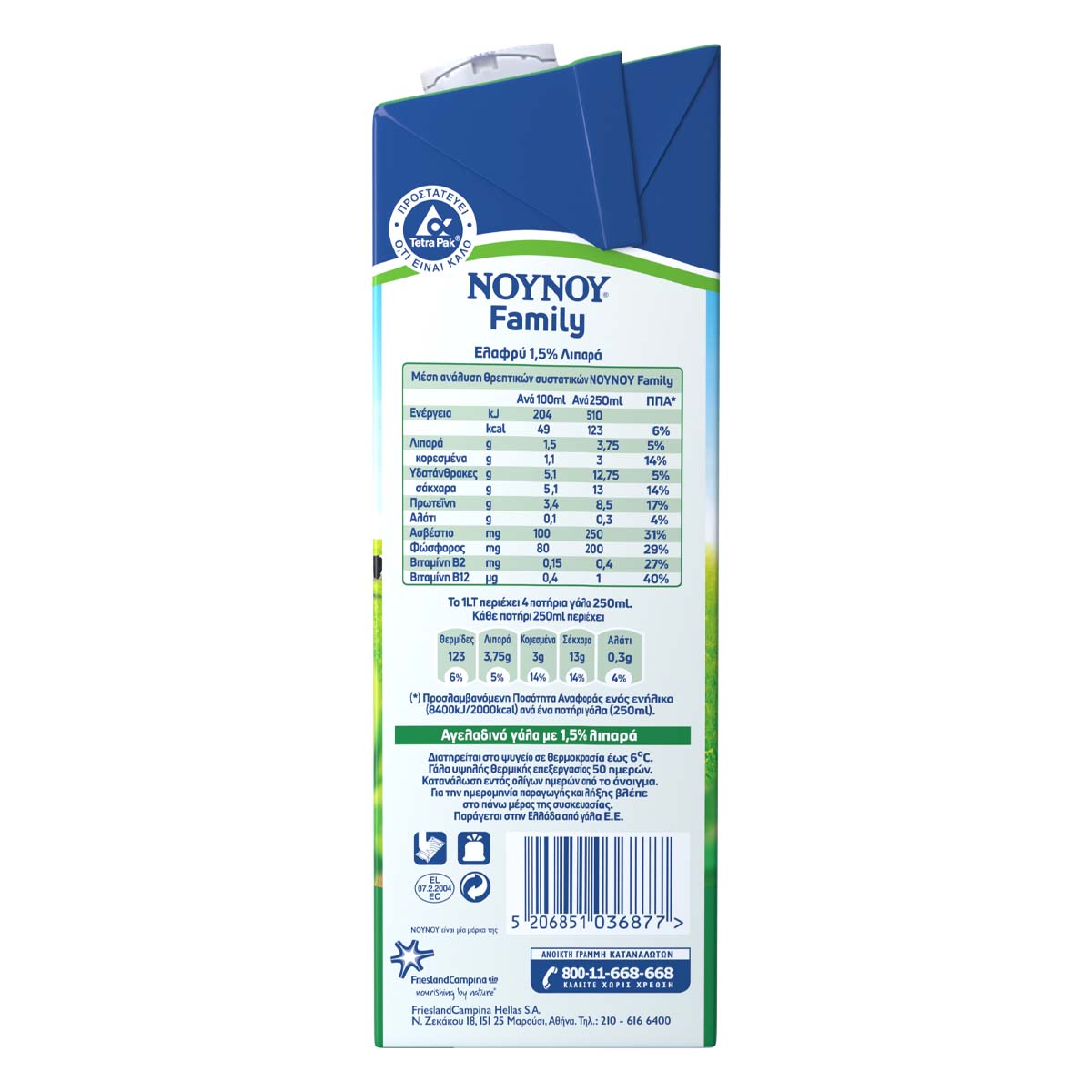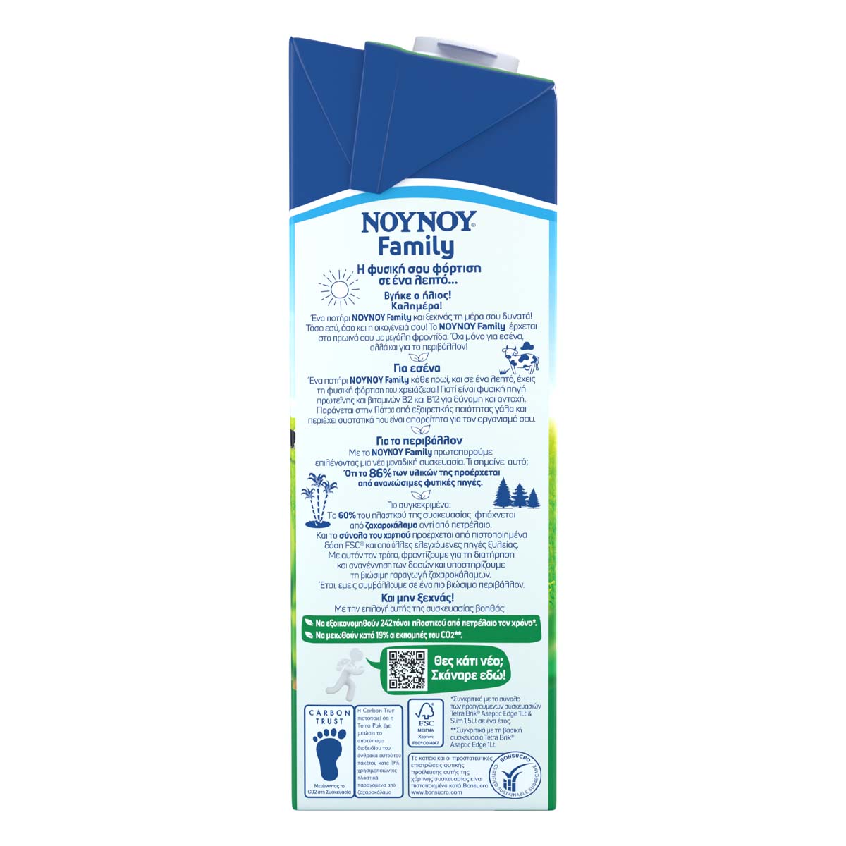 NUNOU Family is a selected cow's milk of excellent quality, with high nutritional value and unique taste. It is a natural source of protein and vitamins B2 & B12 for strength and endurance. One minute every morning is enough to enjoy a glass and start your day strong! And in eco-friendly packaging made from 86% renewable plant sources!