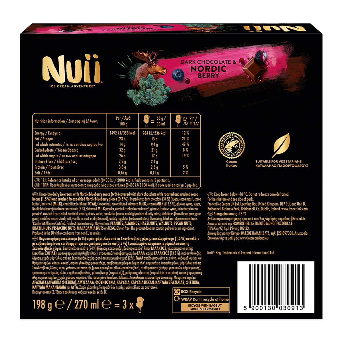 Nuii Ice Cream Dark Chocolate & Nordic Berry 3 Pieces 198 gr 270 ml