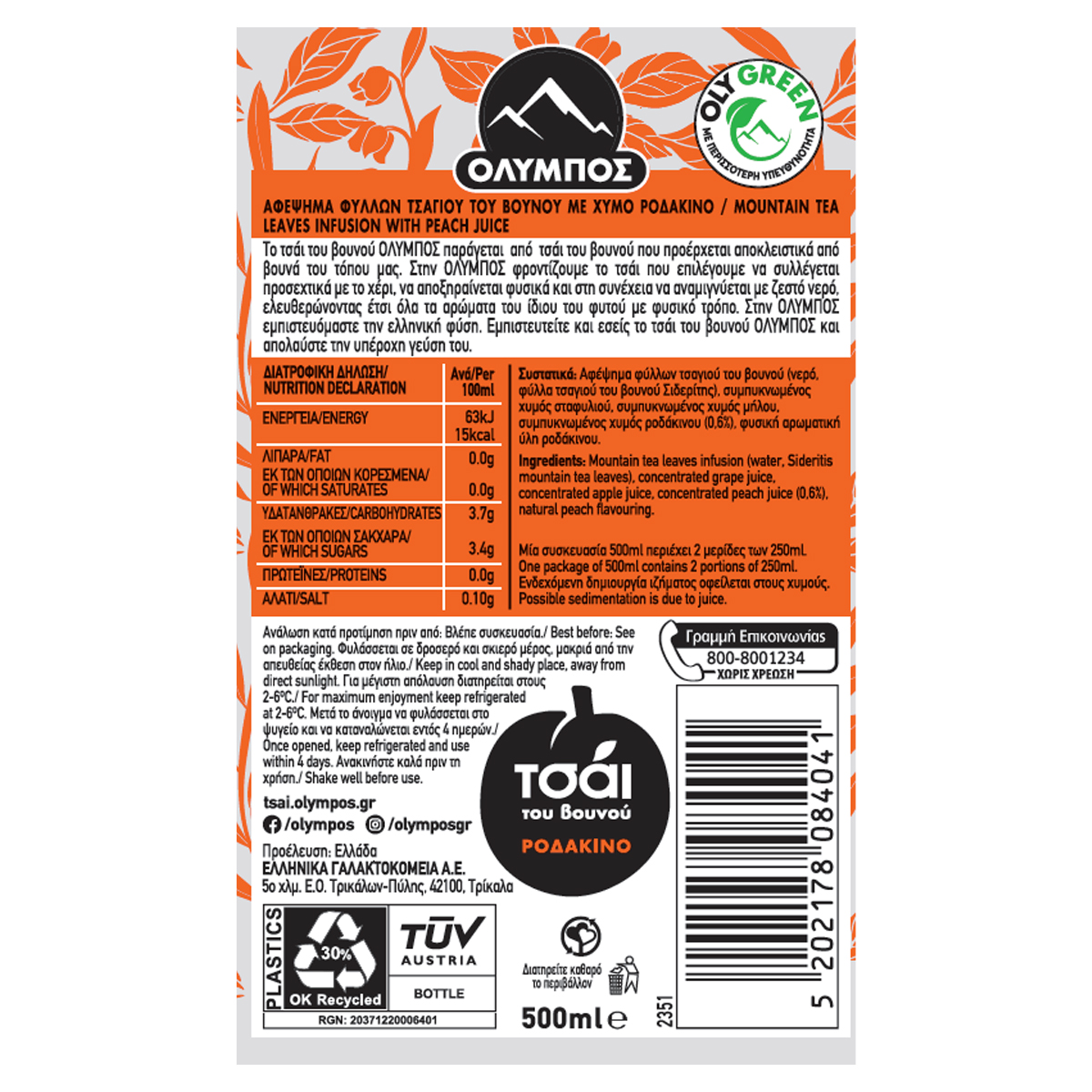 On the path of Greekness and naturalness, OLYMPOS brings today the cool pleasure and benefits of authentic tea in delicious flavors! Mountain tea is hand-harvested, naturally dried and then mixed with hot water, releasing the aromas of the plant itself and offering a unique refreshing taste experience. With no artificial additives and no caffeine for even more natural enjoyment, the new OLYMPOS mountain iced tea is made only with natural ingredients. Enjoy the ultimate coolness of Greek nature with the care of OLYMPOS... What could be more natural!