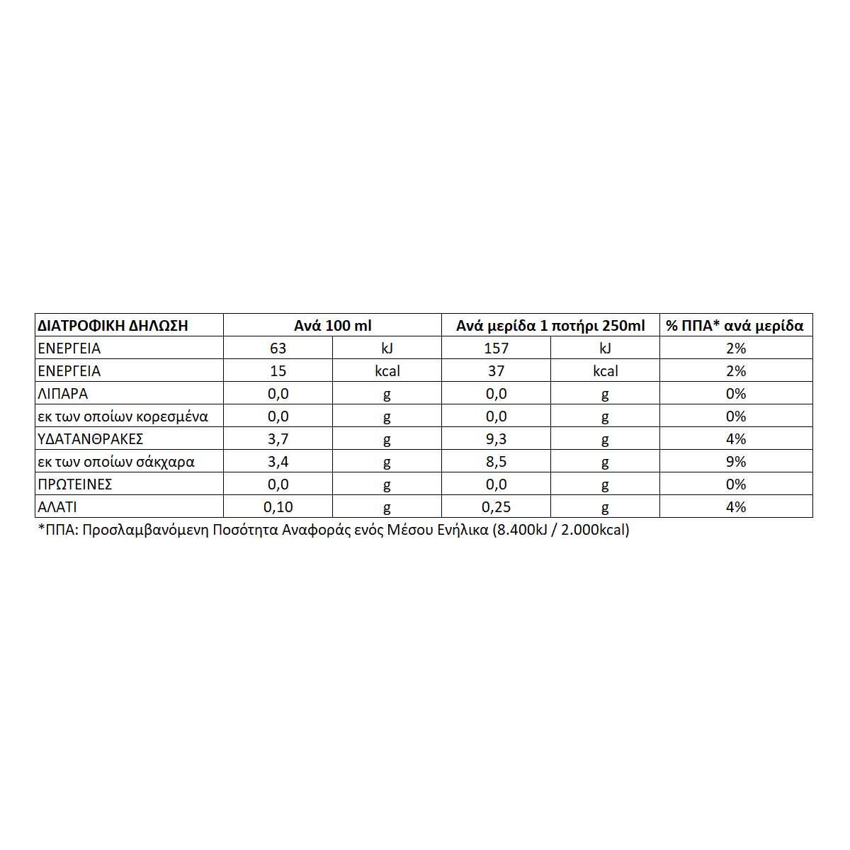 * DISCLAIMER: Chalkiadakis SA, always respecting its consumers, strives to provide reliable information on its website, based on the data it receives from its suppliers. However, Chalkiadakis SA informs that there may be discrepancies between the information provided and that on product labels, for technical reasons that may be due to stock updates. The information presented on the website does not in any way replace the information on the product labels, and in case of any discrepancy, the information on the product labels always prevails. Consumers must check the information on the labels before purchasing and before consuming the product and always consume it according to the intended use defined by the supplier. In case of disagreement, the consumer expressly waives any right of appeal against Chalkiadakis SA.