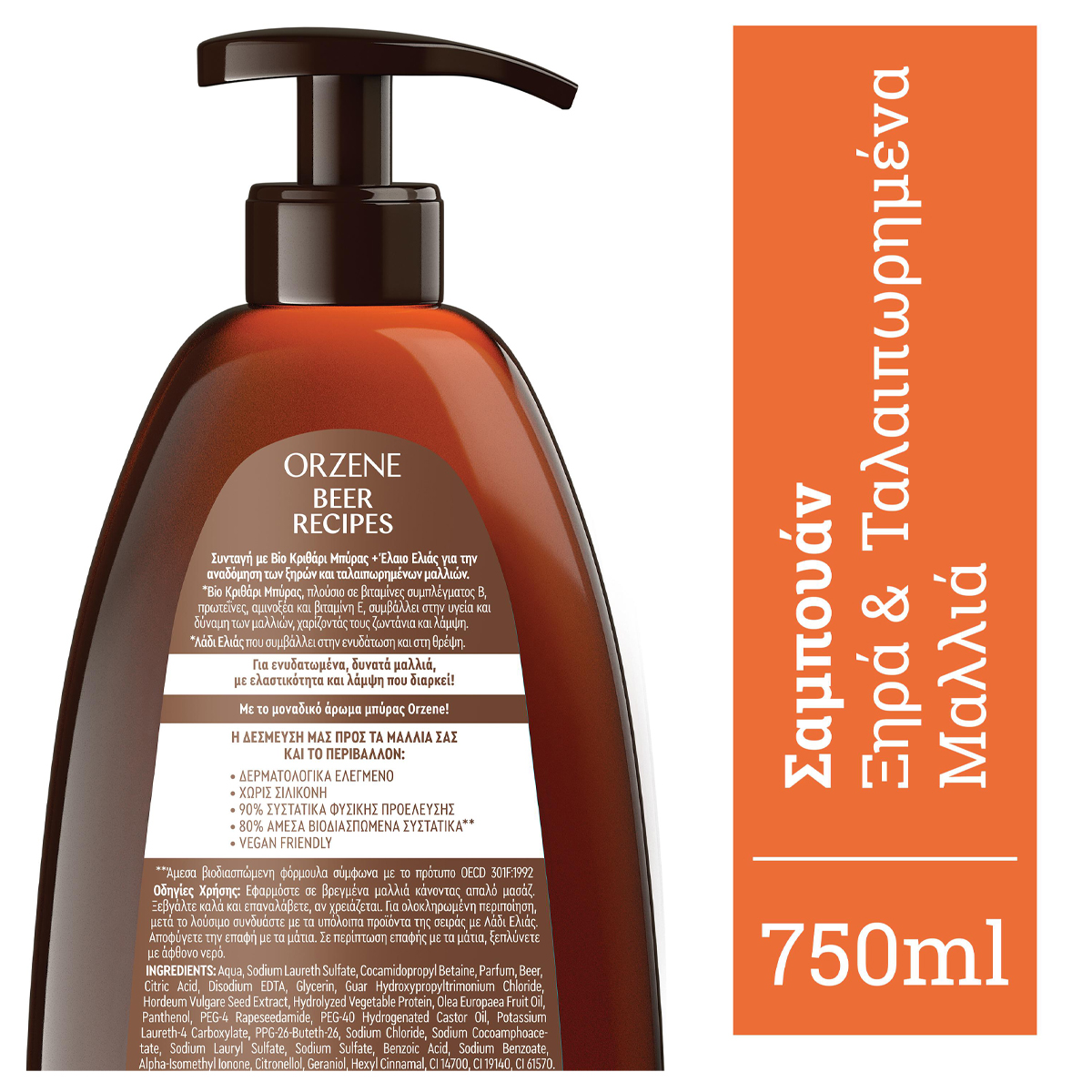 Recipe with Bio Beer Barley + Olive Oil for the reconstruction of dry and damaged hair. *Organic Beer Barley, rich in B vitamins, proteins, amino acids and vitamin E, contributes to the health and strength of hair, giving it vitality and shine. *Olive oil that contributes to hydration and nourishment. For moisturized, strong hair, with elasticity and long-lasting shine *Directly biodegradable formula according to OECD 301F:1992.