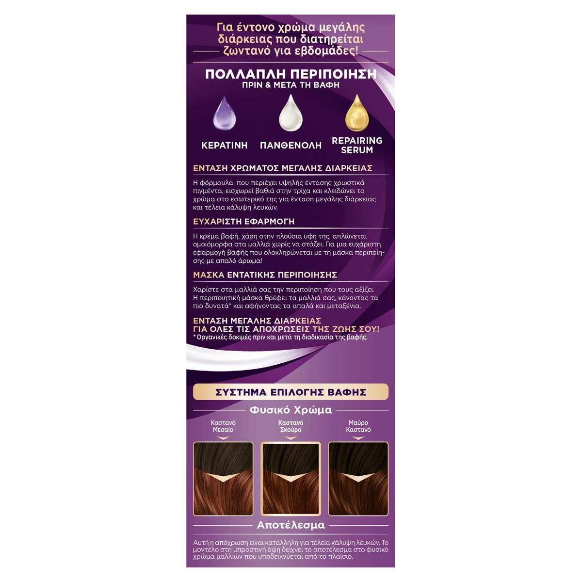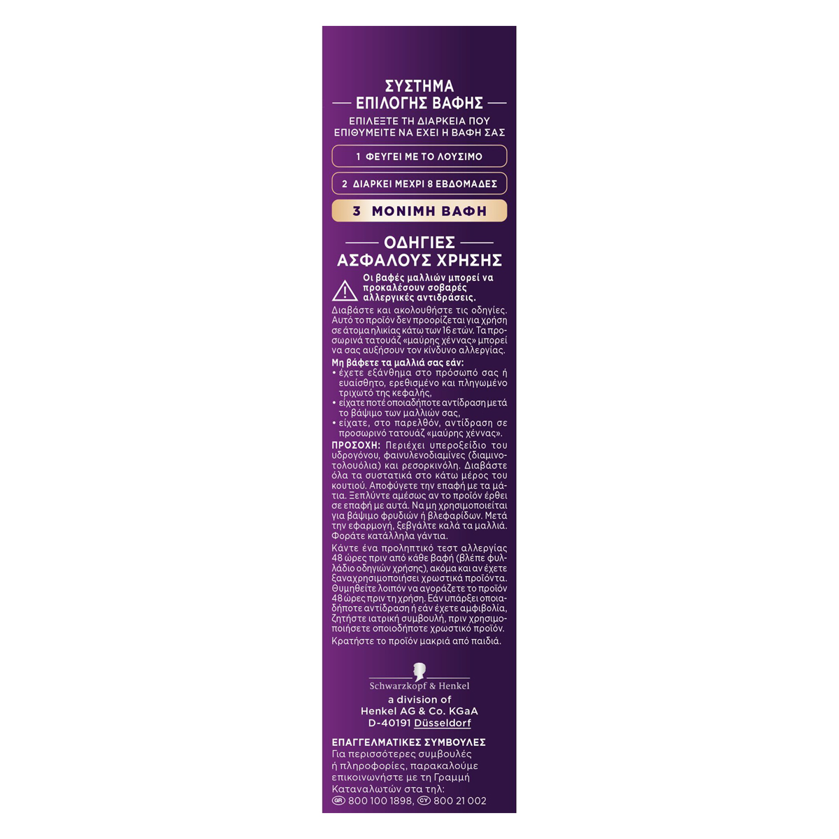 Palette: the formula, which contains high-intensity pigmented pigments, penetrates deep into the hair and locks the color inside, offering protection against fading. For colour intensity that lasts for weeks and perfect white coverage. The dye formula and conditioning mask, in combination with the Triple Care System - with Keratin, Panthenol and Nutri-Oil - nourish the hair. Palette strengthens, provides softness and seals the hair for an impressive long-lasting colour effect.