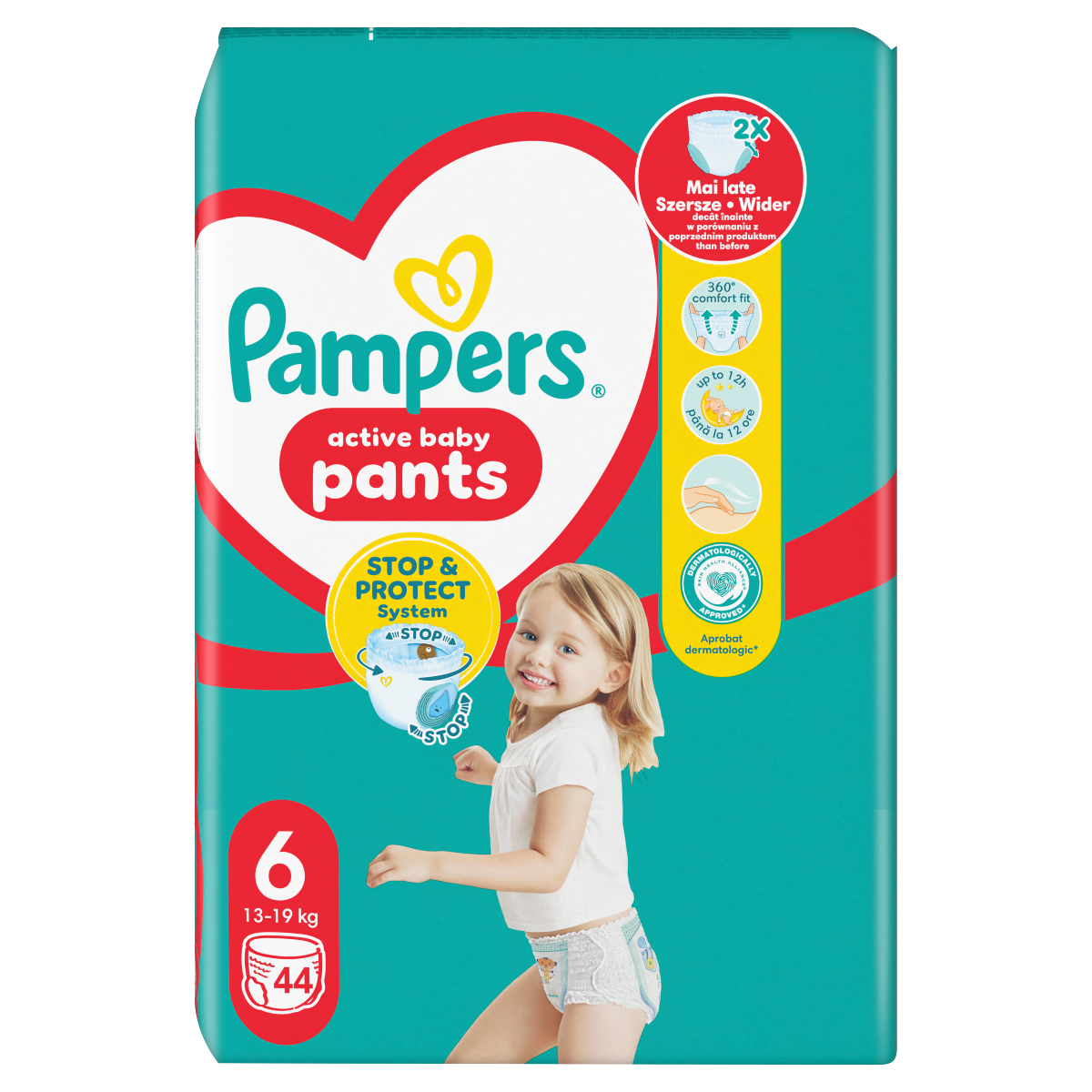 Καθώς το μωρό σας αρχίζει να είναι πιο δραστήριο, θέλετε μια πάνα που να μπορεί να συμβαδίσει με τις νέες του κινήσεις. Οι πάνες-βρακάκι Pampers Pants προσφέρουν ανώτερη προστασία από κάθε διαρροή σε οποιαδήποτε θέση και αν βρεθεί το μικρούλι σας, μέρα και νύχτα! Οι πάνες-βρακάκι Pampers Pants διαθέτουν το σύστημα Stop & Protect pocket κι επίσης περιλαμβάνουν: 2x πιο πλατιά* προστατευτικά στα ποδαράκια, που βοηθούν στην πρόληψη των διαρροών γύρω τους, ελαστική περιμετρική μεσούλα 360° που αγκαλιάζει το σώμα του μωρού σας καθώς κινείται, και έναν υπερ-απορροφητικό πυρήνα που προσφέρει έως και 12 ώρες προστασίας. Όπως όλες οι πάνες-βρακάκι των Pampers, η πάνα-Βρακάκι Pampers Pants αλλάζεται εύκολα ακόμη κι όταν το μωρό σας κινείται έντονα: Τραβήξτε προς τα πάνω για να τη βάλετε, σκίστε τα πλαϊνά για να την αφαιρέσετε εύκολα, τυλίξτε την και κολλήστε την με την ταινία για εύκολη απόρριψη. Όπως για εσάς, έτσι και για τα Pampers, προέχει η ασφάλεια του μωρού σας: Οι πάνες-βρακάκι Pampers Pants είναι δερματολογικά ελεγμένες και είναι εγκεκριμένες από τους δερματολόγους της Skin Health Alliance.