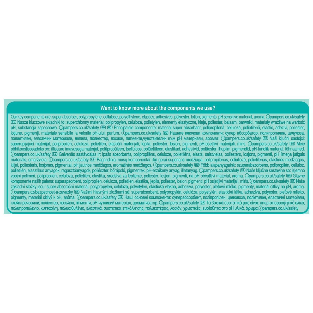 Give your baby the most comfortable Pampers diaper with 3-fold protection against leaks, with Pampers Premium Care Pants! Now with a unique special STOP & PROTECT design that prevents leaks at the back of the pants, for complete leakage protection for up to 12 hours. As your baby gets more active, you'll need a diaper that offers a comfortable fit and reliable protection that follows their every move. That's why Pampers Premium Care Pants Diaper Pants offer the ultimate in Pampers comfort and protection, with a 360° Comfort Fit, thanks to ultra-soft and stretchy materials that fit your lively baby's body perfectly. Like all diaper pants, Pampers Premium Care Pants are easy to change: pull up to put it on, tear the sides to take it off and tape it on for easy disposal, even when your baby is moving around vigorously. Like you, Pampers puts your baby's safety first: Pampers Premium Care Pants are dermatologically tested and do not contain allergenic fragrance substances (as defined in European Cosmetics Regulation No. 1223/2009). They have been approved by the dermatologists of the Skin Health Alliance as safe for contact with baby's skin. Want to know more about the ingredients Pampers use? Visit pampers.gr