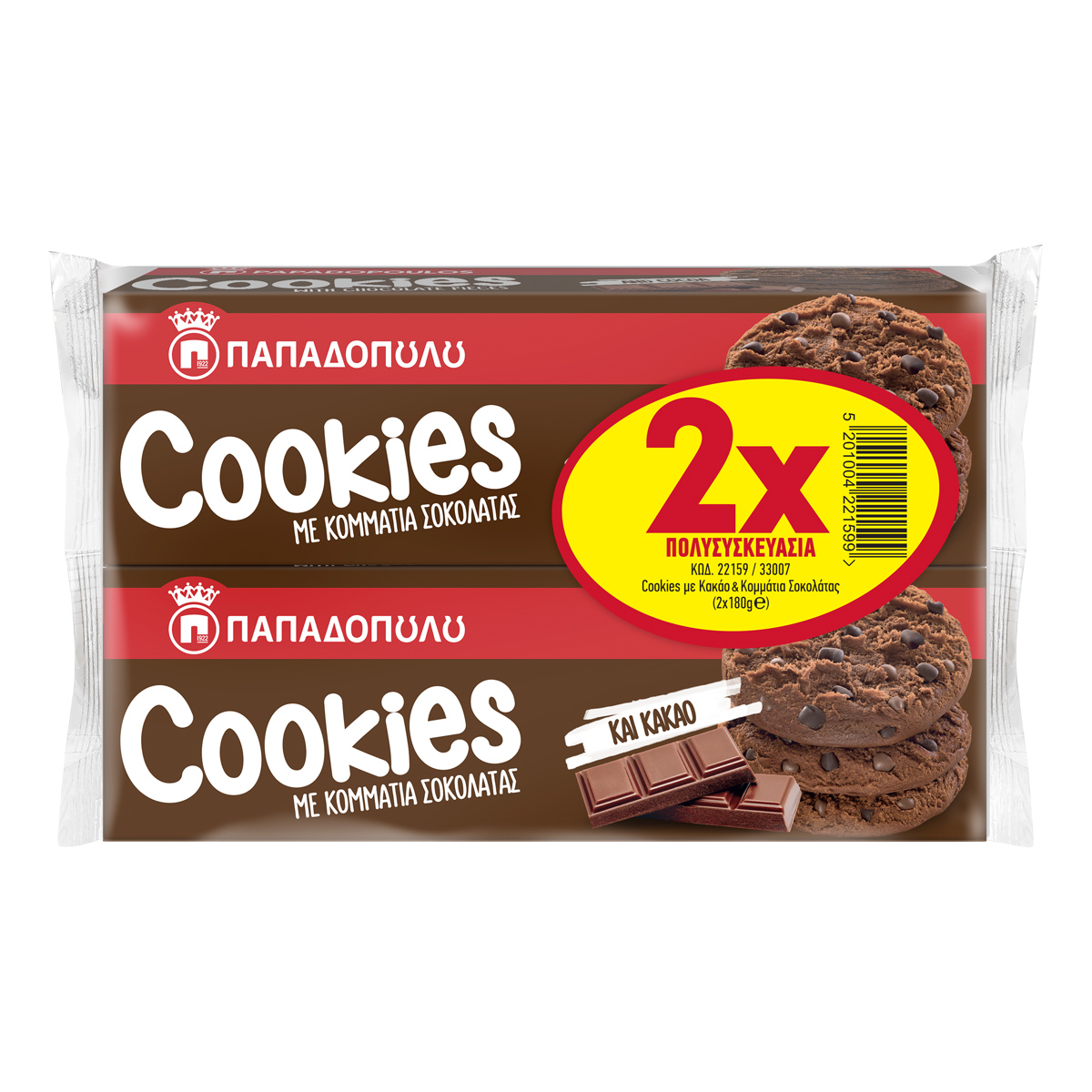 Delicious chocolate chips and aromatic cocoa are combined uniquely in this crunchy cookie. You will be blown away!
