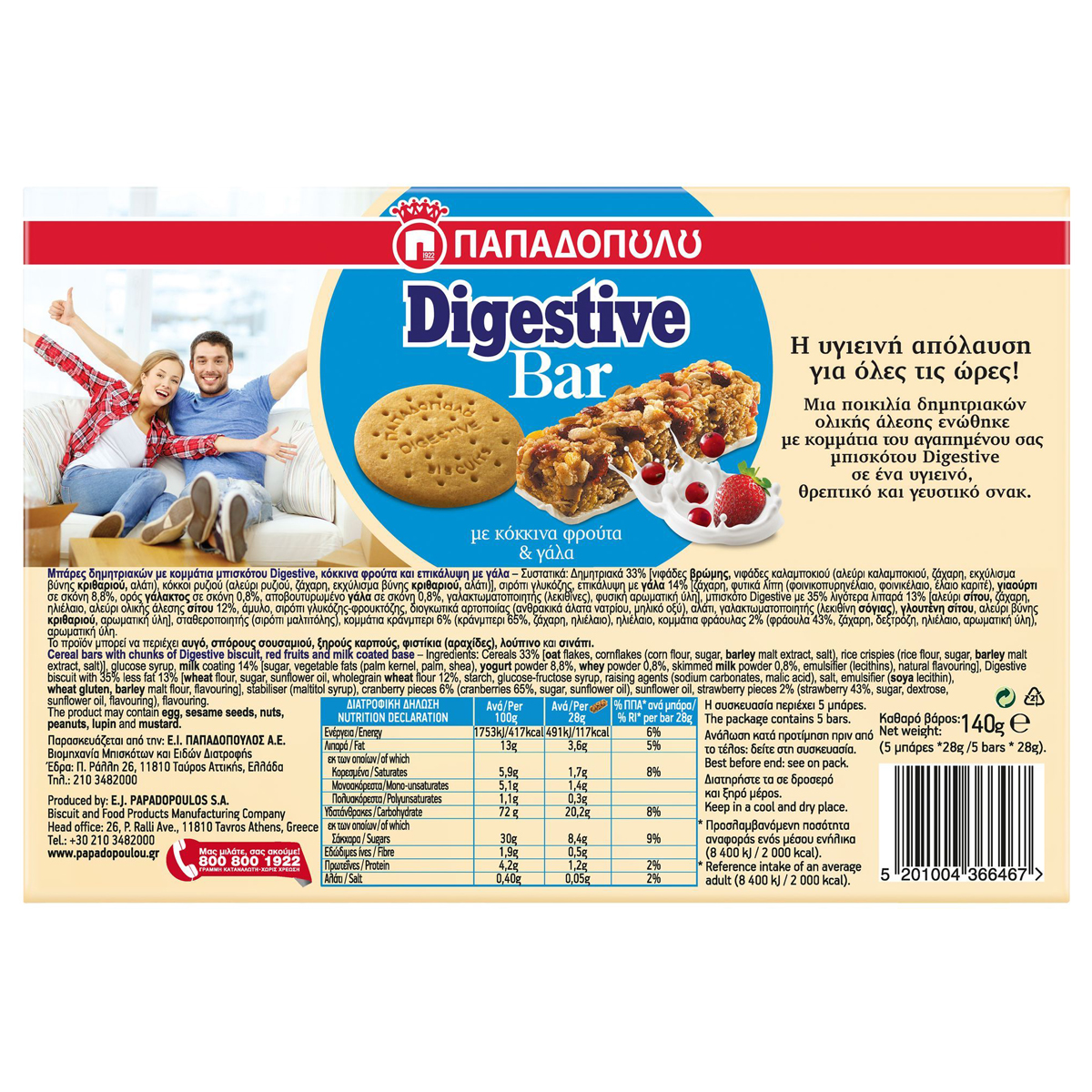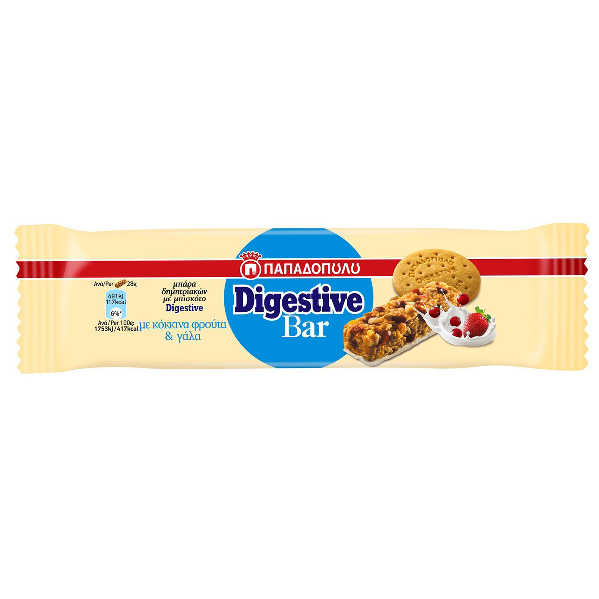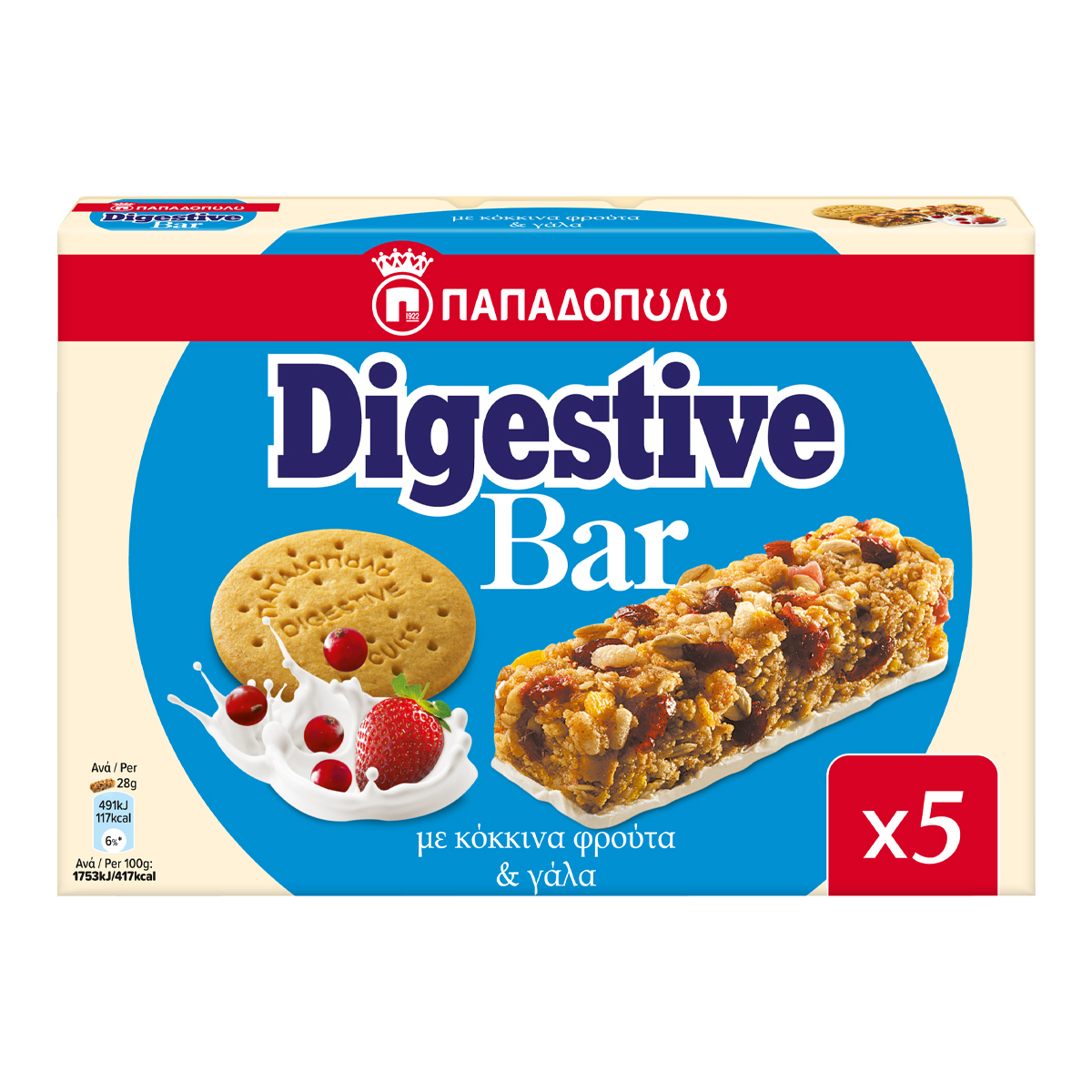 The delicious Digestive biscuits and milk combine harmoniously with the benefits of fruit and cereals.