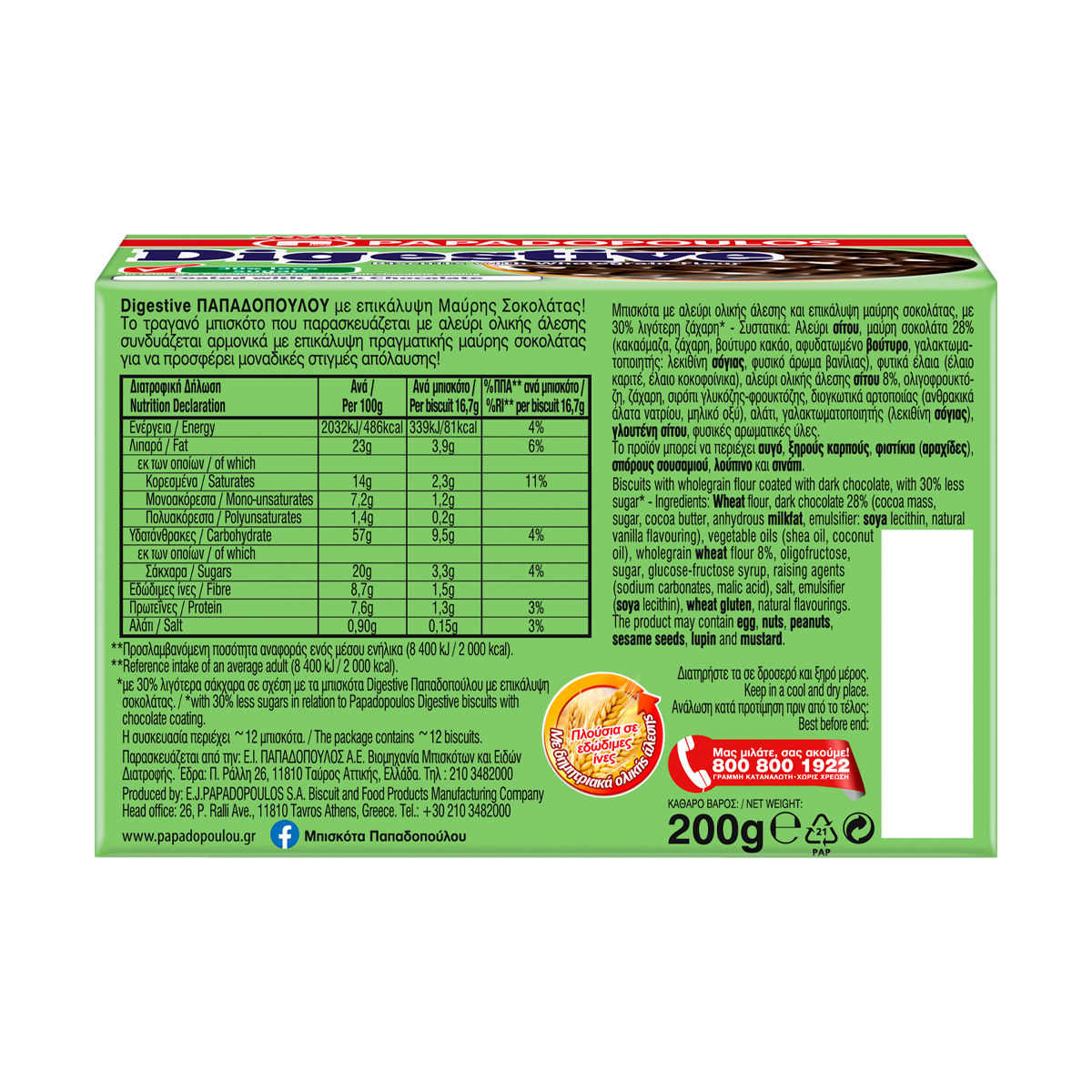 With the nutritional value of whole grain and fiber, 30% less sugar and... a coating of delicious dark chocolate!