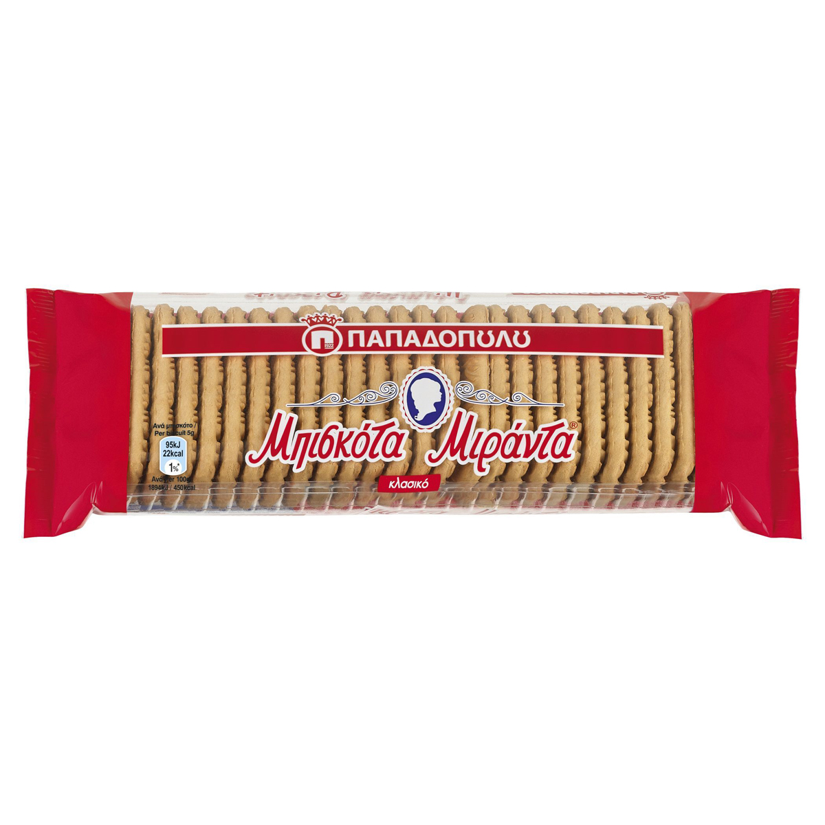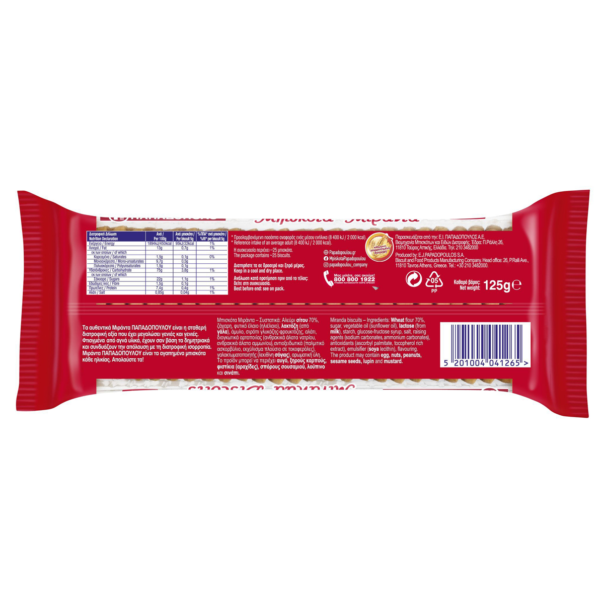 Miranda biscuits are the favourite biscuits of every age, combining pleasure with pleasant memories of our childhood. Low in grain content , plain or with drinks can be a favorite snack in a balanced diet of young and old.