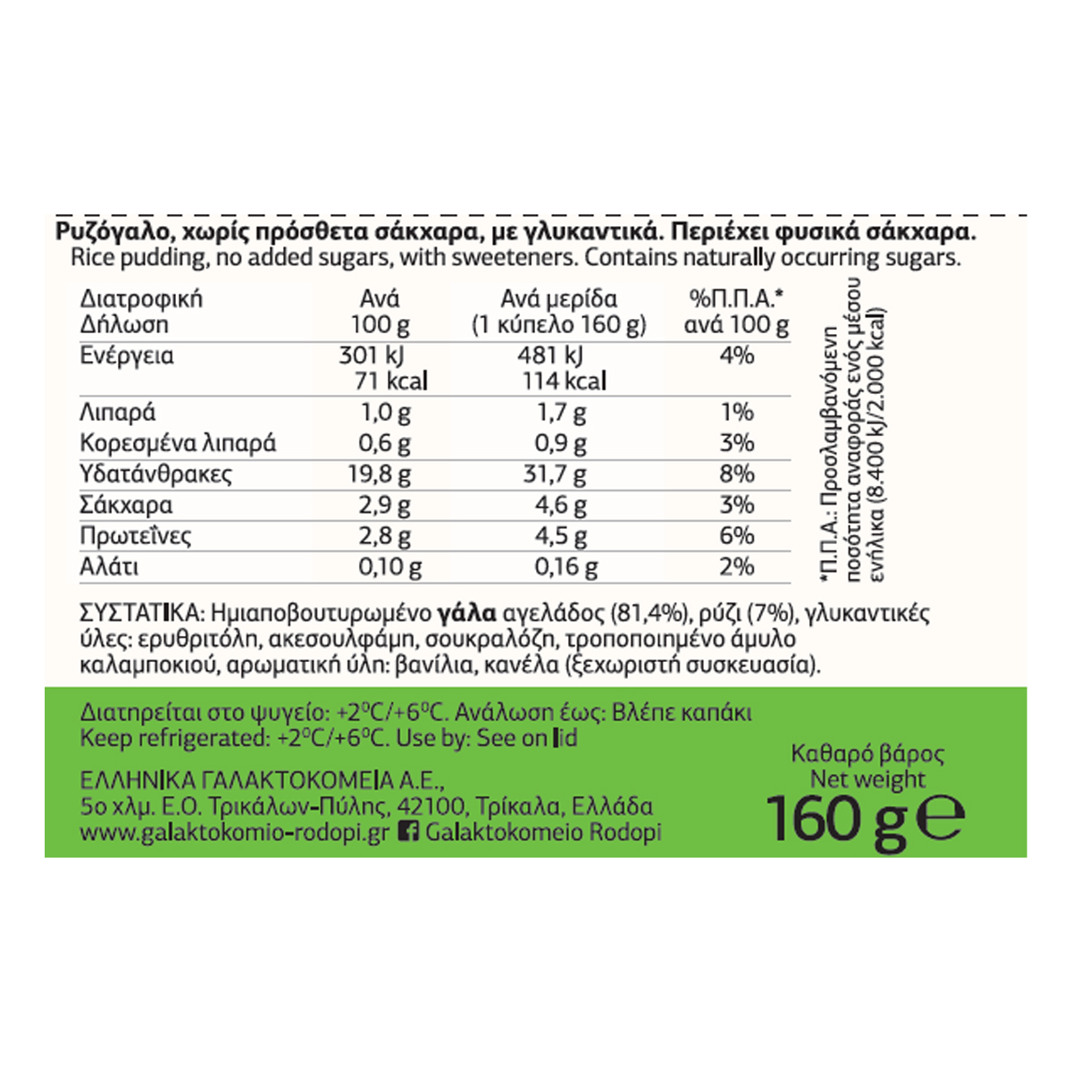 Όλη η απόλαυση των επιδορπίων γάλακτος ΡΟΔΟΠΗ, χωρίς προσθήκη ζάχαρης, με μειωμένες θερμίδες και τη μοναδική γεύση του ρυζόγαλου!