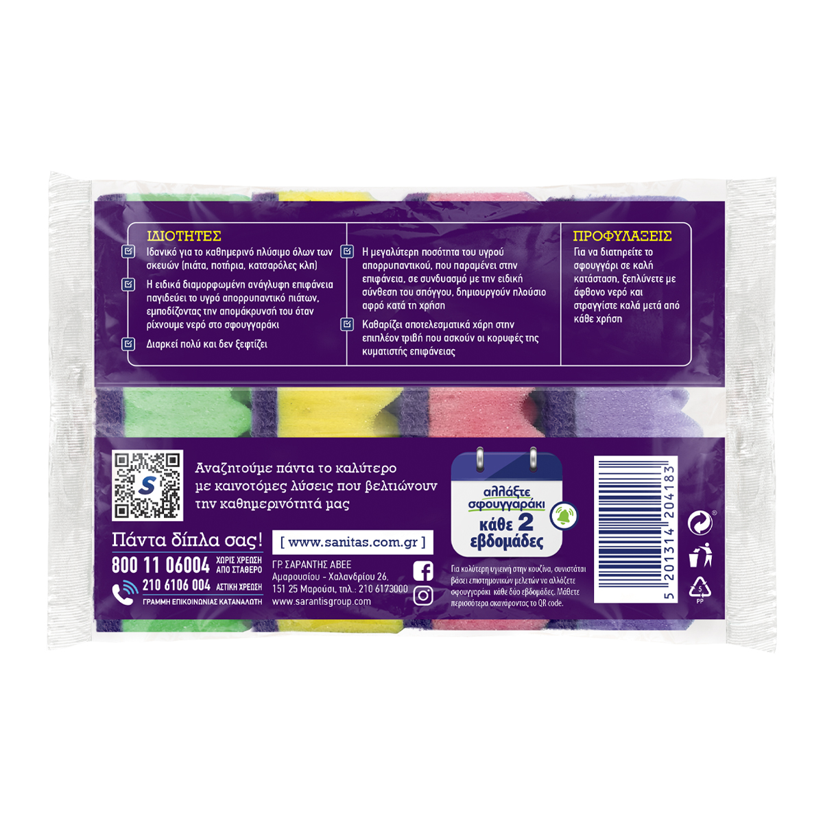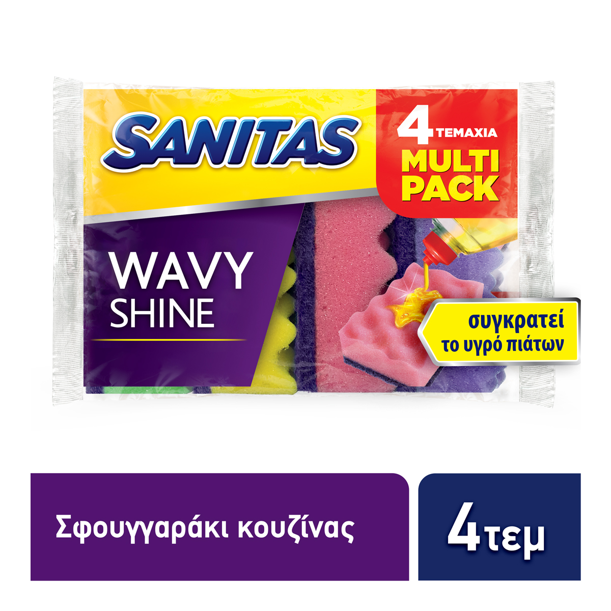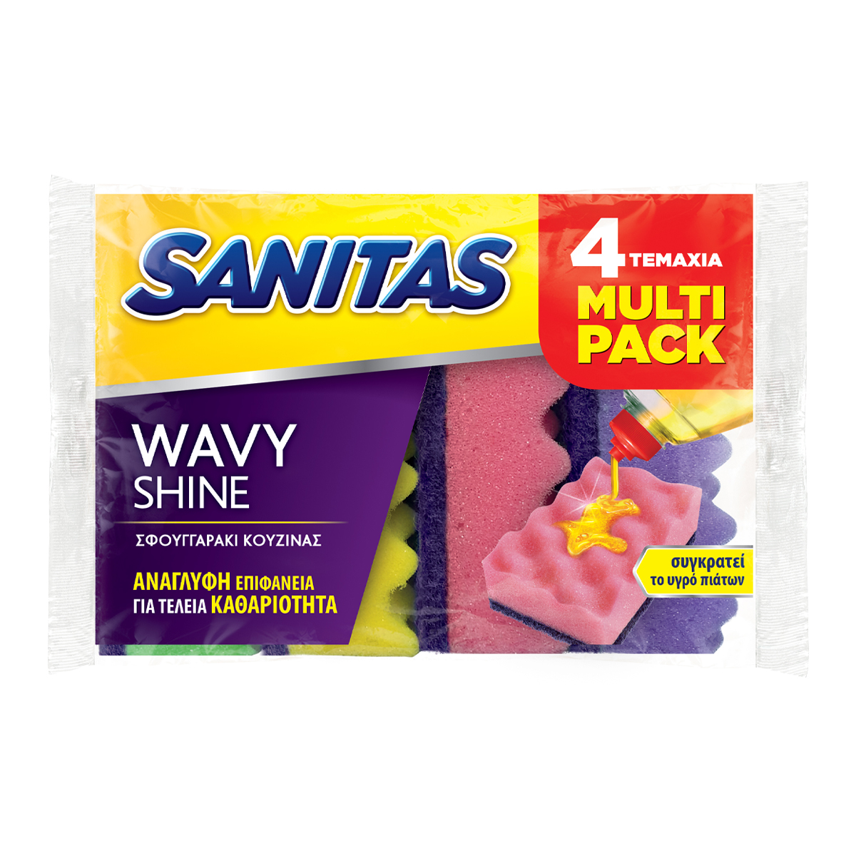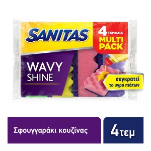 The Sanitas Wavy Shine kitchen sponge, thanks to its embossed surface, ensures perfect cleanliness and economy of liquid dishwashing detergent. The peaks of the wavy surface exert extra friction on the utensils while trapping the liquid detergent, preventing it from being removed when water is poured into the sponge. The greater amount of liquid detergent remaining on the surface combined with the special composition of the sponge creates a rich foam during use. Available in multi-package form Embossed surface for perfect cleanliness Retains dishwashing liquid Rich, long-lasting foam Suitable for all utensils.