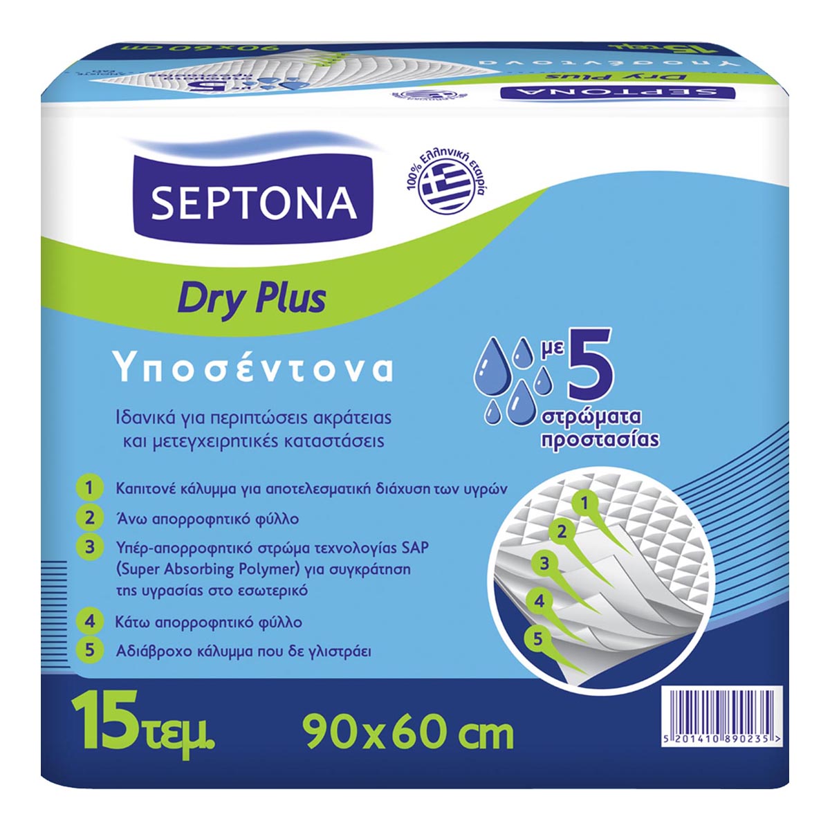 SEPTONA Dry Plus underpads offer top absorbency thanks to their 5 layers of protection and are ideal for incontinence and post-operative situations. They feature a quilted surface for effective fluid diffusion, a super-absorbent SAP (Super Absorbing Polymer) technology core to retain moisture inside and a waterproof non-slip back cover.