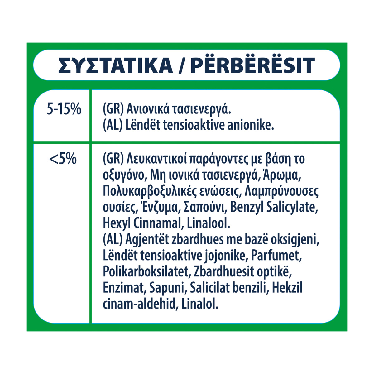 Skip Spring Fresh with 100% natural enzymes gives amazing results from the first wash. It removes tough stains, giving your clothes an intense freshness that lasts. Its innovative formula makes it effective even in the short program.