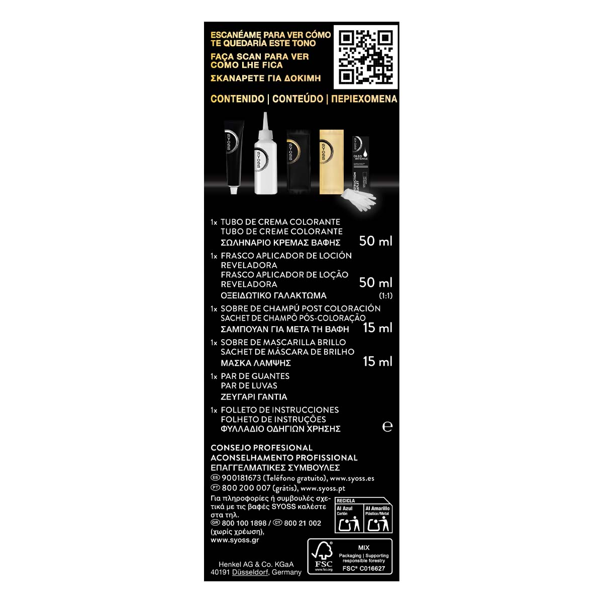Syoss Oleo Intense Μόνιμη Κρέμα Βαφή Μαλλιών – χωρίς αμμωνία, εμπλουτισμένο με εκλεκτά έλαια Βαφή μαλλιών χωρίς αμμωνία που έχει σχεδιαστεί για να προσφέρει κάτι παραπάνω από χρώμα, με μια φόρμουλα χωρίς αμμωνία που περιέχει εκλεκτά έλαια. Θρέφει και προστατεύει τα μαλλιά σας, ενώ προσφέρει 100% κάλυψη λευκών. 1 - Κρέμα βαφή με έλαια για προστασία των μαλλιών κατά τη διάρκεια της βαφής: Πλούσια χρωστικά πιγμέντα, ακριβές χρωματικό αποτέλεσμα & 100 % κάλυψη λευκών 2 - Σαμπουάν για μετά τη βαφή για απαλή απομάκρυνση υπολειμμάτων χρώματος: Λειαίνει και περιποιείται τα βαμμένα μαλλιά. Ήπιο για το τριχωτό της κεφαλής 3 - Μάσκα λάμψης για πιο δυνατά με υγιή όψη μαλλιά. Εντατική περιποίηση για τα μαλλιά, ορατά πιο λαμπερά* *σε σύγκριση με μαλλιά που δεν έχει εφαρμοστεί το προϊόν Λεπτομέρειες προϊόντος. Χωρίς αμμωνία. Με εκλεκτά έλαια. 100% κάλυψη των λευκών. Προστασία από τη φθορά σε σύγκριση με μαλλιά που δεν έχει εφαρμοστεί το προϊόν.