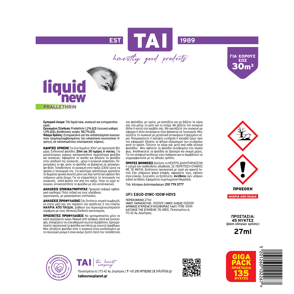 Tai Liquid New Εντομοαπωθητικό Υγρο Αντ/κό 3 Τεμάχια 27 ml