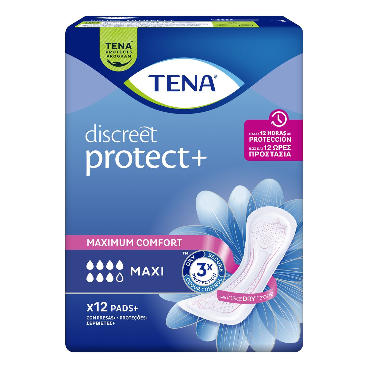 For women with larger, unexpected urine leaks, TENA Discreet Maxi is the ideal incontinence pad. For maximum safety, the instaDRY™ belt absorbs fluids in seconds and the superabsorbent core locks even larger leaks deep inside the sanitary napkin. This comfortable bladder weakness sanitary napkin has soft elastic sides and gently conforms to the body. With Triple Leak, Odour and Moisture Protection, the TENA Discreet Maxi Sanitary Napkin is the ultimate everyday choice for any woman with greater bladder weakness. Feel secure in whatever you face with instant absorption and a comfortable fit.